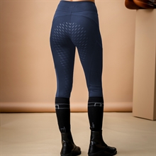 Den høje talje og de flatterende søm giver en flot silhuet og sikrer, at tightsene holder formen – også efter gentagen brug. Det silikone full seat-grip giver ekstra stabilitet og sikkerhed i sadlen, mens meshpaneler på lårene og perforering ved underbenene sørger for effektiv ventilation. Den sømfri inderside af benet øger komforten, især under lange rideture og ved brug af høje ridestøvler.