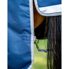 Slidstærkt Amigo Bravo regndækken med halv høj hals. Den halv høje hals, er med til at give dækkenet en anden pasform, som er særlig god til smalle heste, da den høje hals giver en tættere pasform. Dækkenet er med 1200 denier specialvævet nylon på ydersiden, er vandtæt og åndbart.