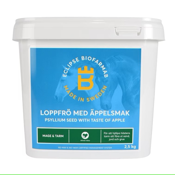 Nogle heste kan være kræsne og afviser smagen eller lugten af almindelige loppefrø. Derfor har Eclipse Biofarmab udviklet en variant med naturlig æblesmag – uden tilsat sukker.