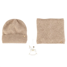 Både huen og halsedissen er blødt foret, hvilket giver ekstra komfort og behagelig pasform. Som en ekstra lille overraskelse medfølger der desuden en smuk juletræsvedhæng, som gør gaven endnu mere festlig.