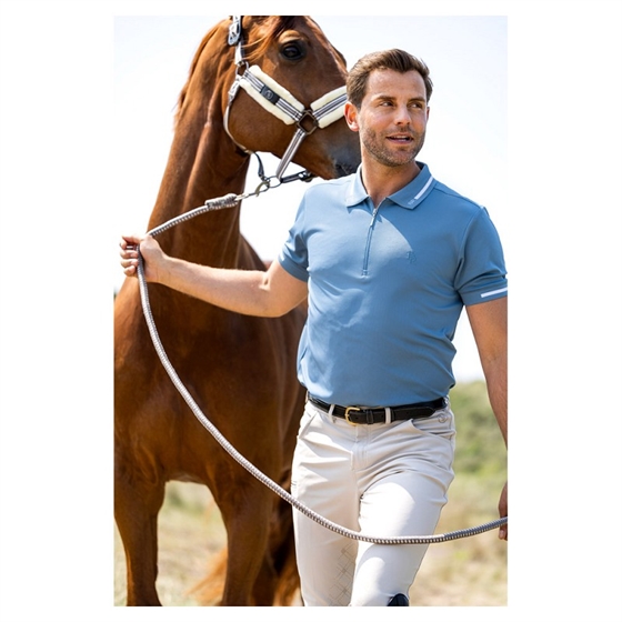 Flot poloshirt i en frisk lyseblå farve til herrer. Poloshirten har et regular fit, og flotte kontastfarvede detaljer. Derudover er der en halv lynlås i halsen, og et flot tone i tone broderi på venstre bryst. Poloshirten er lavet i 95% polyester 5% Spandex. Fås i farve: Captains Blue Fås i størrelse: XXL