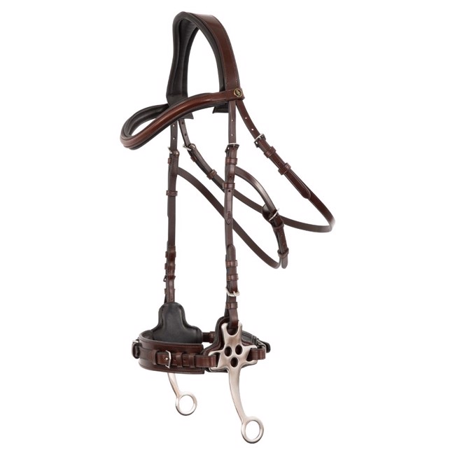 • Højkvalitets trense med hackamore i fleksibelt engelsk læder