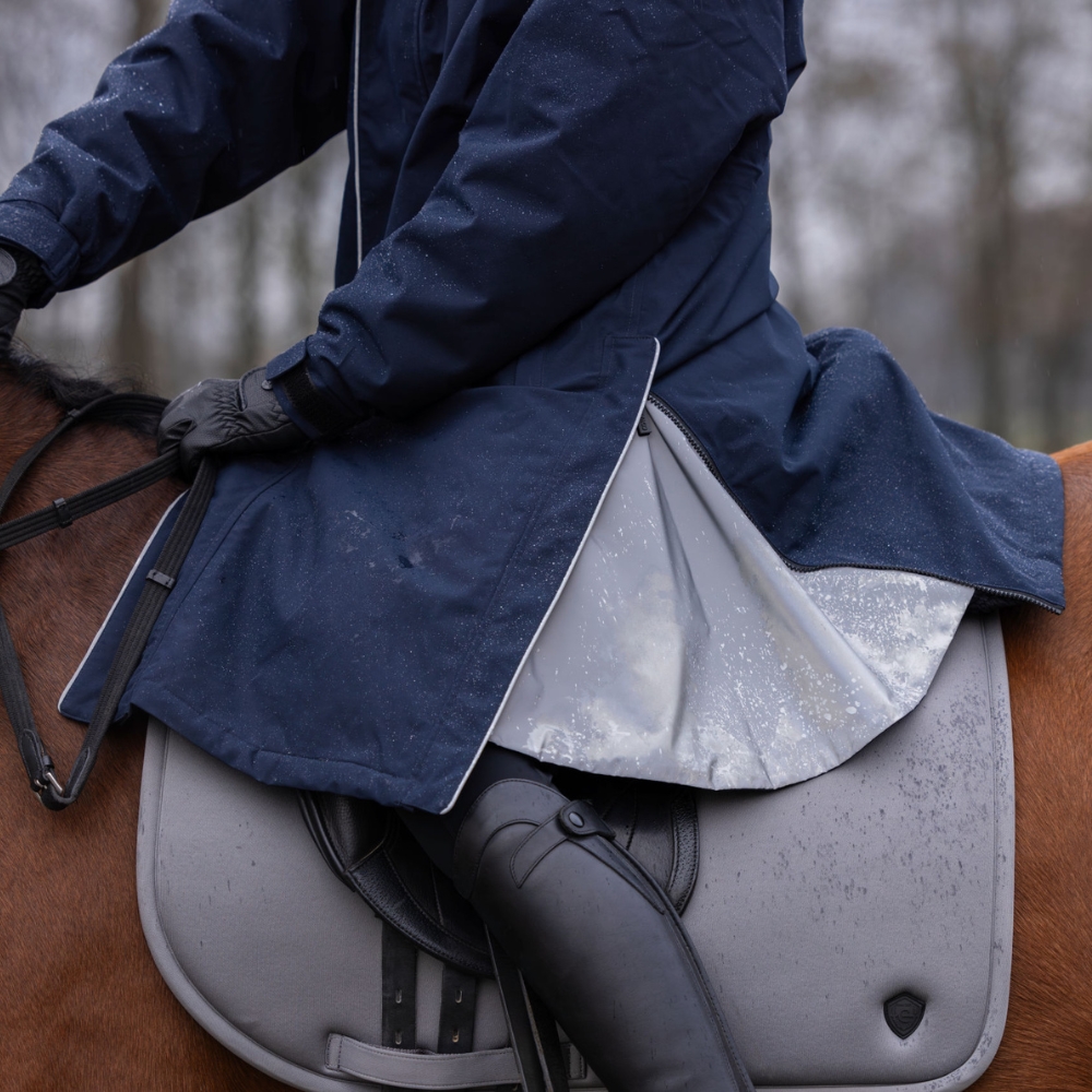 • Elastiske indvendige benstropper – holder frakken på plads, selv i blæsevejr eller under ridning