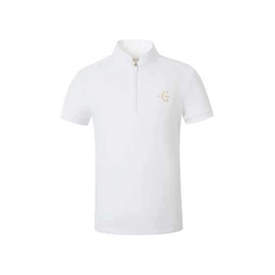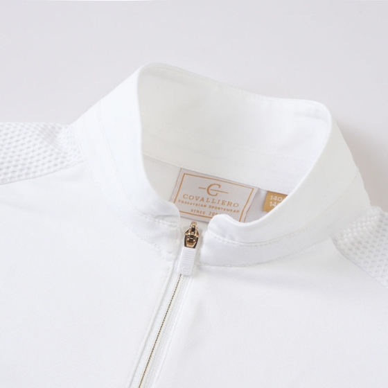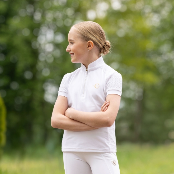 Den eksklusive børnestævnebluse med elegant opretstående krave kombinerer stilrent design med optimal funktionalitet til stævnebrug.
