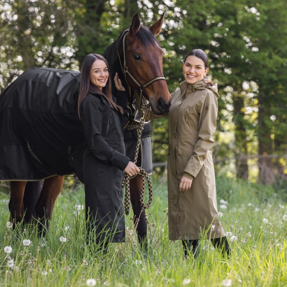 Covalliero regnfrakke kombinerer funktionalitet, komfort og stil. Den er perfekt til ryttere, der ønsker pålidelig beskyttelse mod regn uden at gå på kompromis med bevægelsesfrihed – ideel til både ridning og aktive udendørsdage.