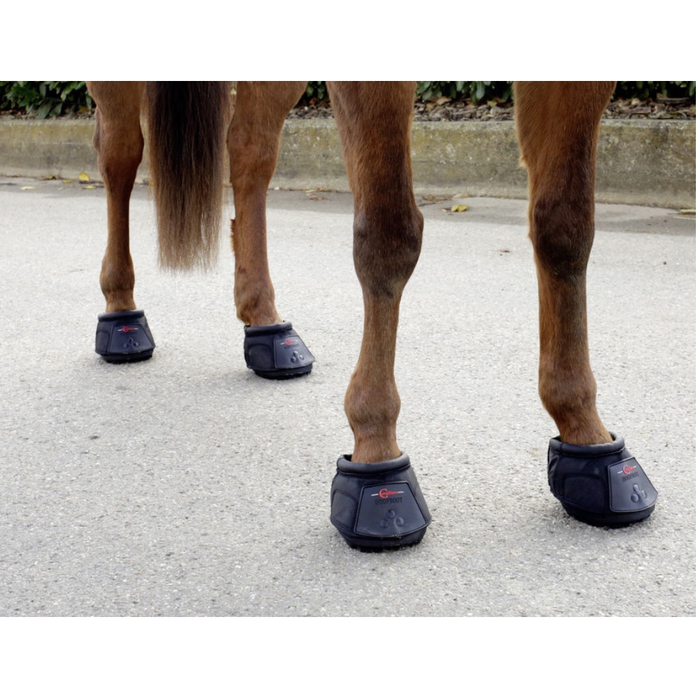 Disse hovsko er designet til at give maksimal beskyttelse og komfort til hestens hove. Med en anatomisk pasform og slidstærke materialer er de ideelle til både genoptræning, fold og ridning på udfordrende underlag.