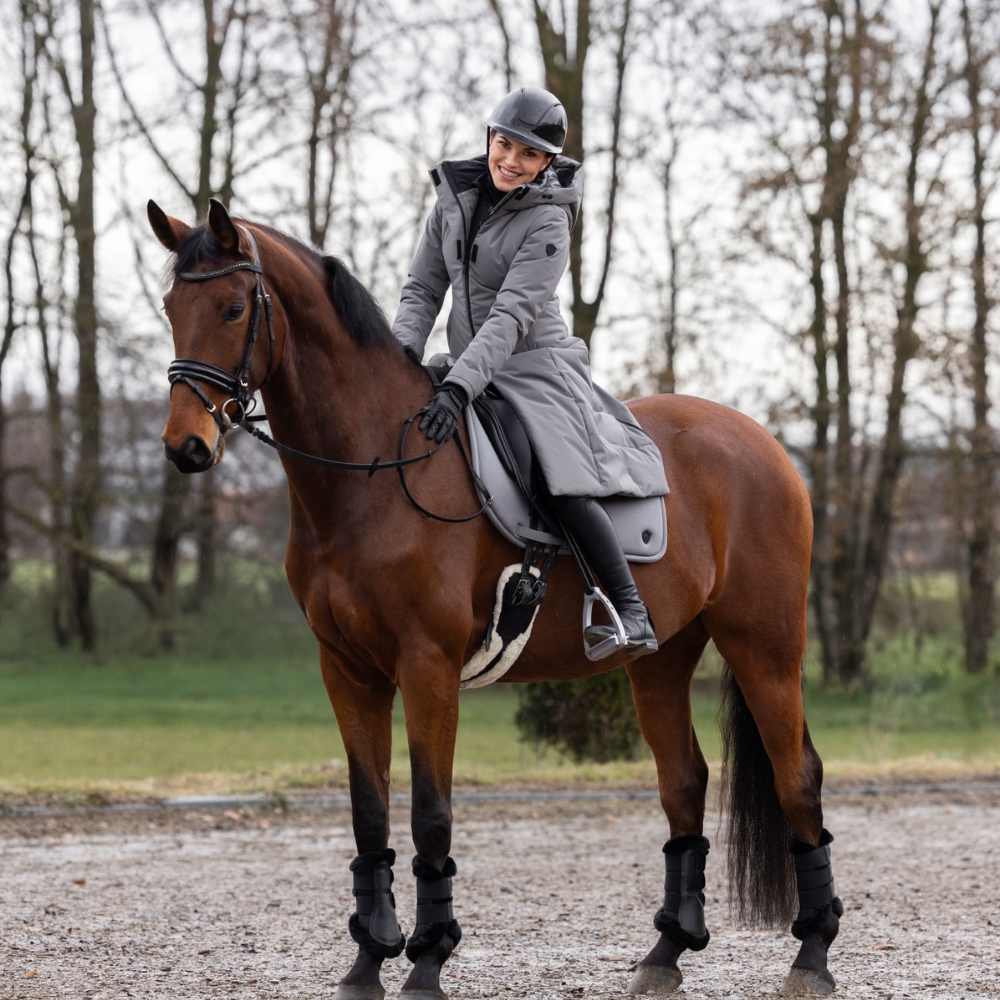 Forkæl dig selv med denne ridejakke i høj kvalitet, der kombinerer eksklusivt design med praktisk funktionalitet – ideel til både stald og sadel i kolde og våde måneder.