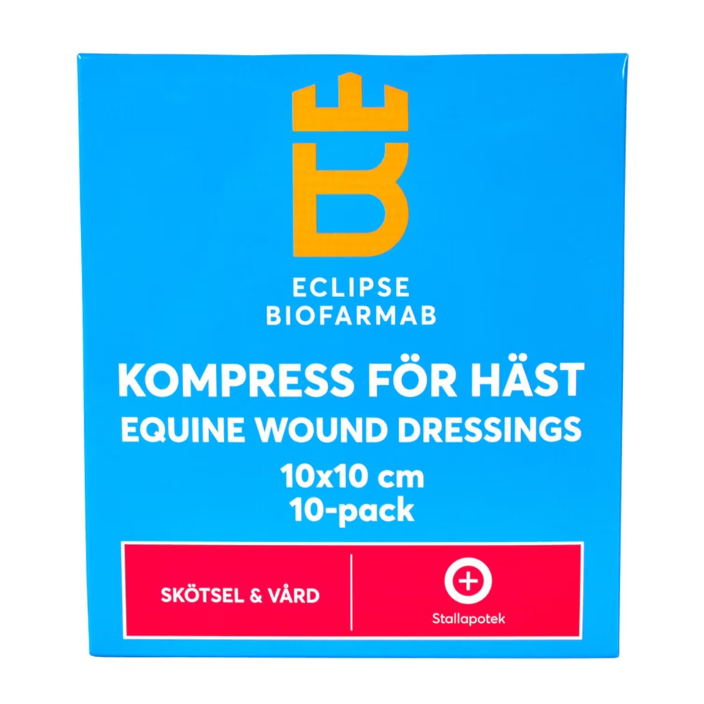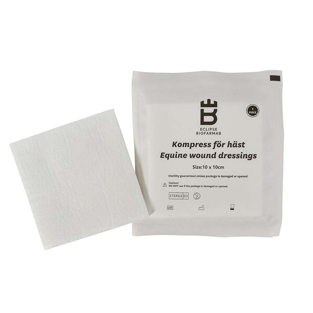 Eclipse Biofarmab kompresser er sterile og velegnede til sårpleje hos dyr. De bruges til både sårvask og sårforbinding og er et vigtigt element i enhver førstehjælpskasse til heste og andre dyr.