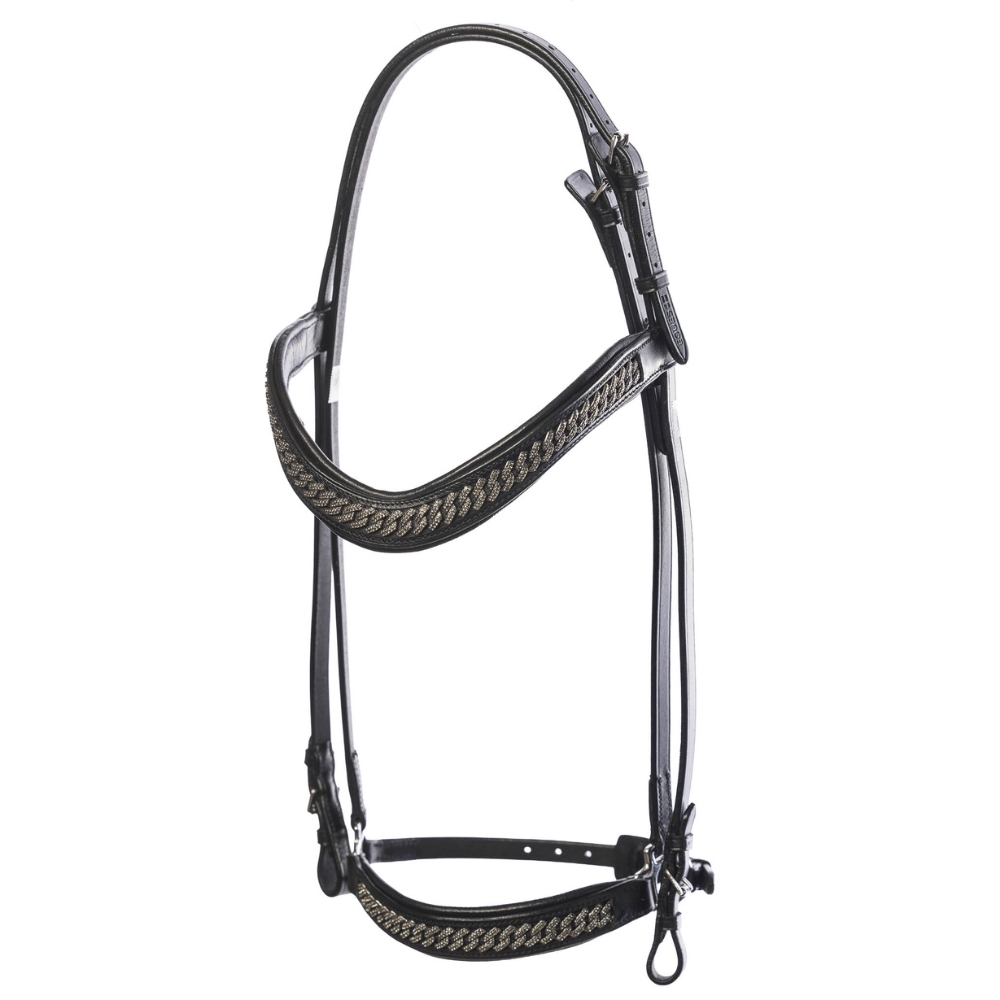 • Eksklusiv Crystal Curb udsmykning: Pandebåndet og næsebåndet er begge smykket med den karakteristiske Crystal Curb, en delikat kæde med fine krystaller, som tilføjer et luksuriøst og smykkefremkaldende udseende.