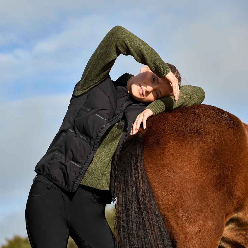 EQUES | KINGSLAND Silje Ladies Hybrid Vest er en alsidig og funktionel vest, der kombinerer komfort, varme og et elegant design – perfekt til ryttere, der ønsker performance og stil i ét.