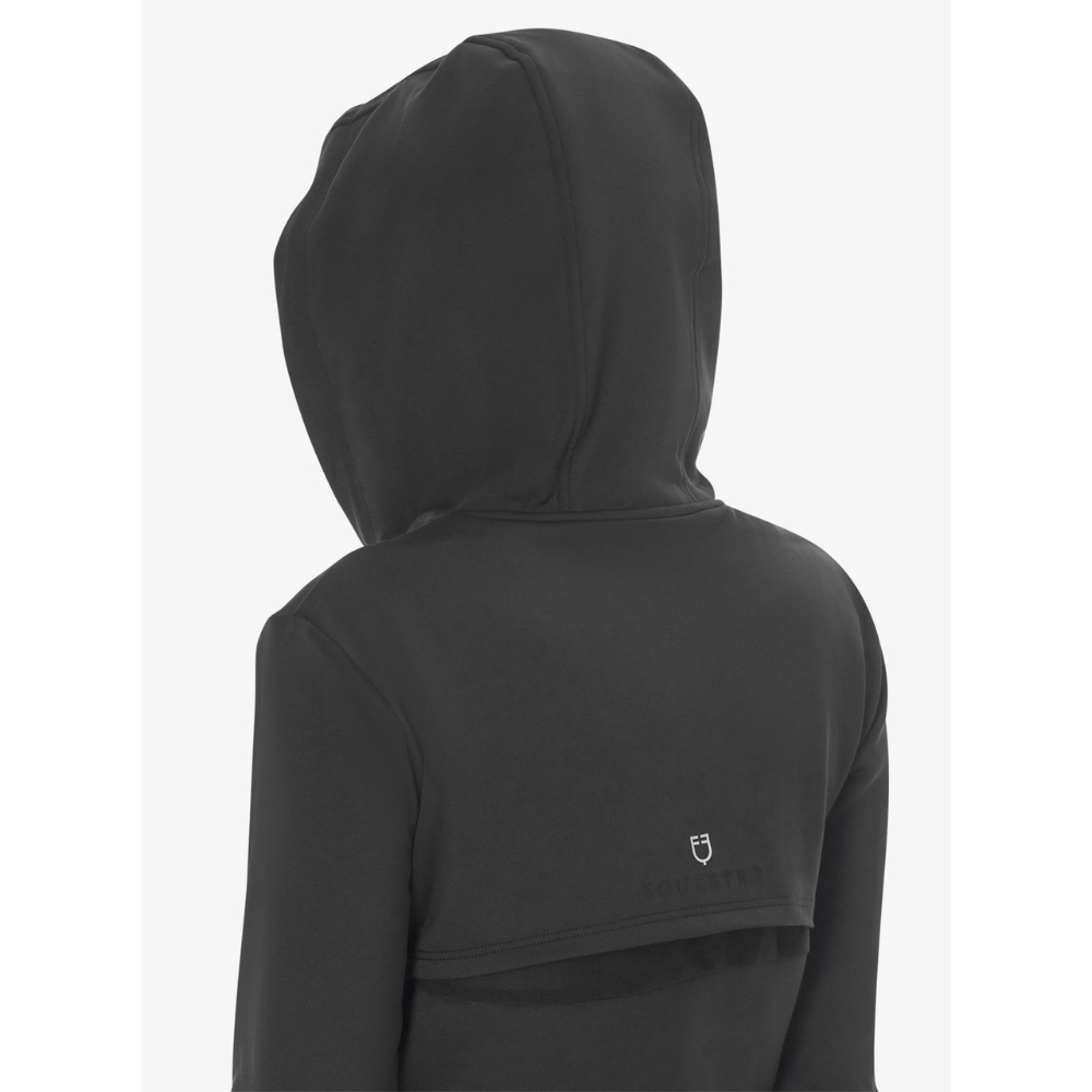 Hættetrøjen er designet med en justerbar hætte med snøre, der giver individuel tilpasning, samt ribkanter ved ærmer og talje, som sikrer en stabil og tæt pasform. Den elastiske linning er dekoreret med siliconeprintet Equestro-tekst for øget holdbarhed og et sporty look.