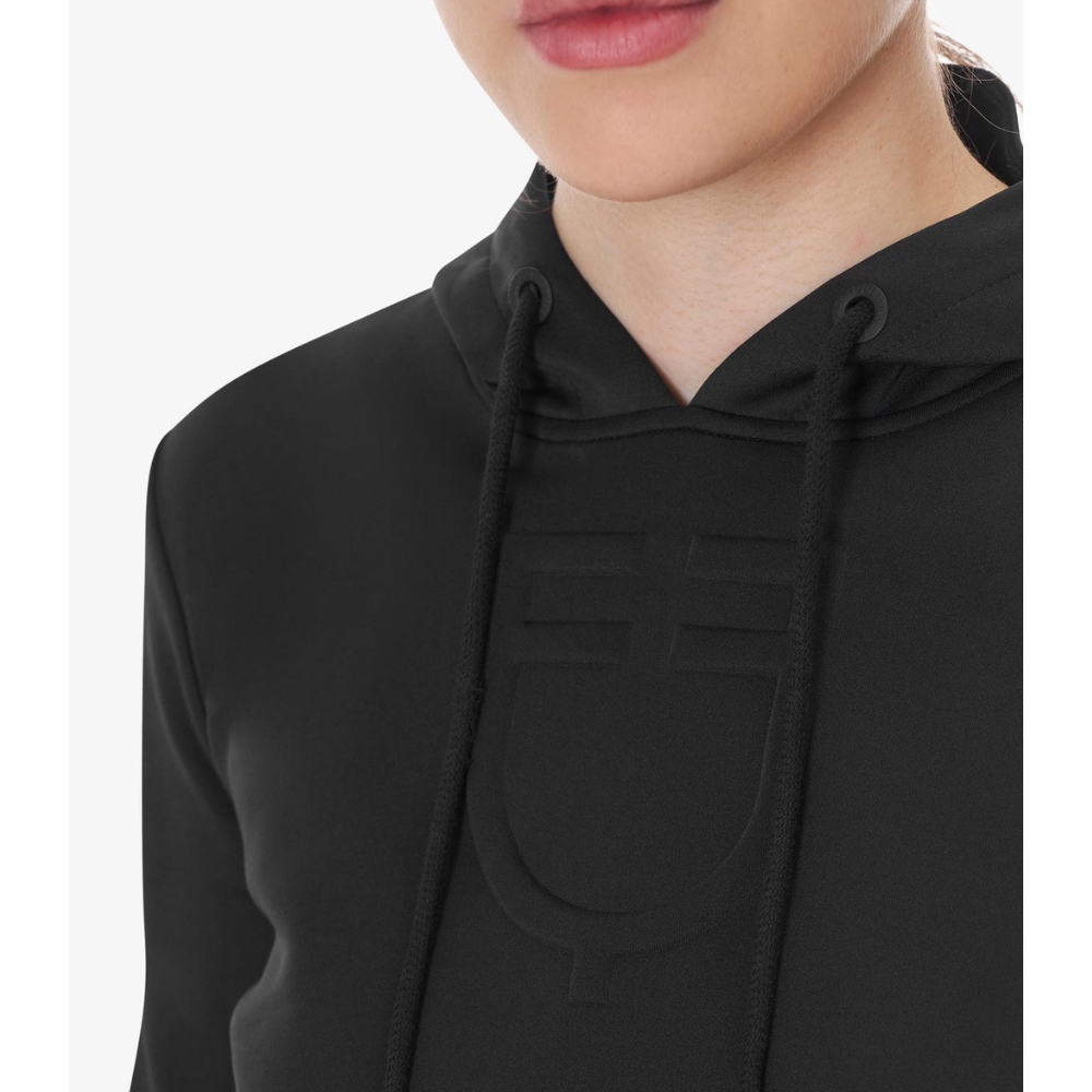 Denne tekniske hættetrøje til kvinder er fremstillet i et højkvalitetsmateriale med 85 % polyester og 15 % spandex, som giver optimal komfort, god elasticitet og høj åndbarhed. Materialet hjælper med at regulere kropstemperaturen under både ridning og daglig aktivitet.