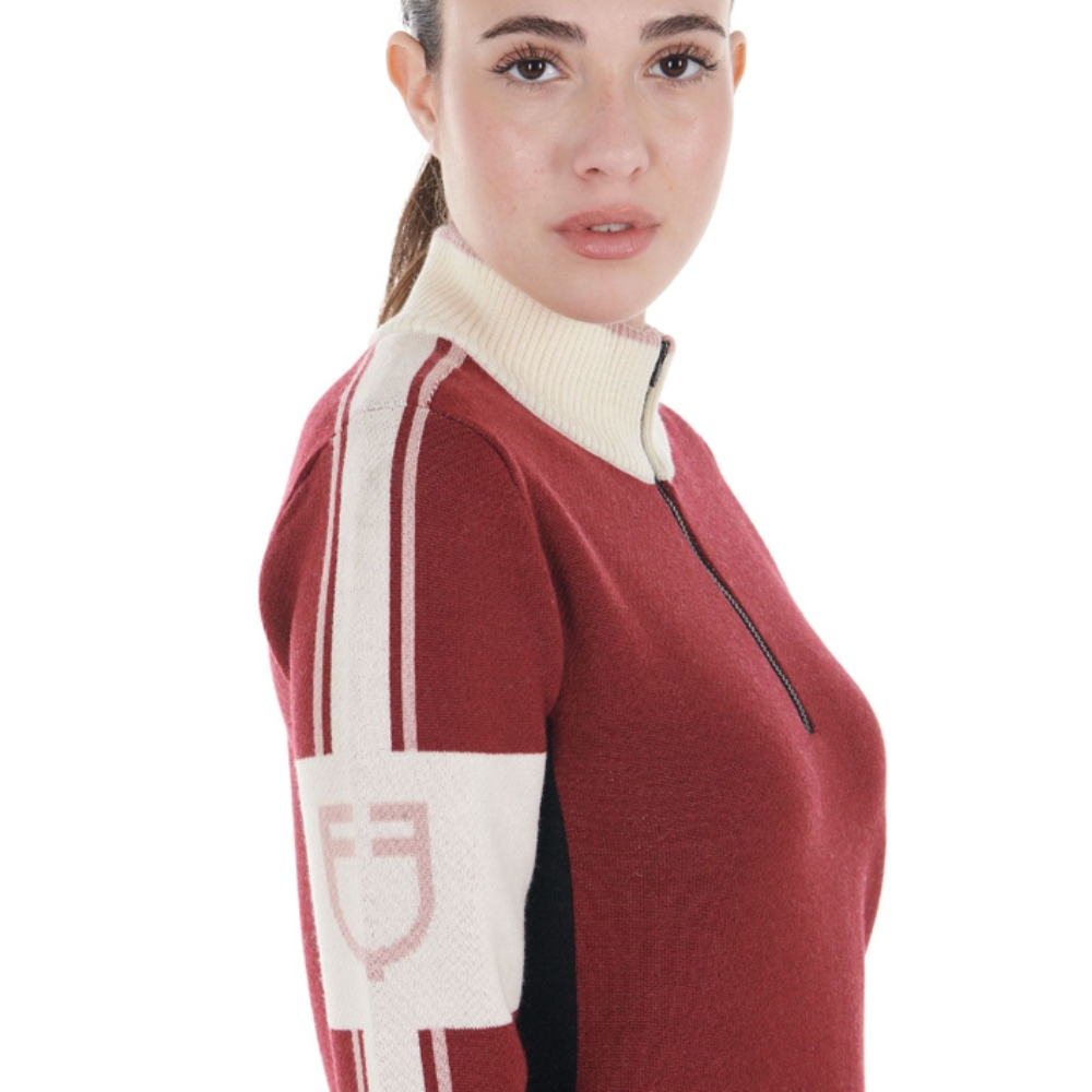 Equestro’s tekniske striktrøje er designet til funktionel brug i både ridning og daglig træning. Modellen er fremstillet i en termoregulerende uldblanding (50 % uld), som sikrer høj isoleringsevne, effektiv fugtstyring og god åndbarhed under aktivitet. Materialet giver en stabil varme uden at føles tungt, og konstruktionen bidrager til optimal bevægelsesfrihed i sadlen.