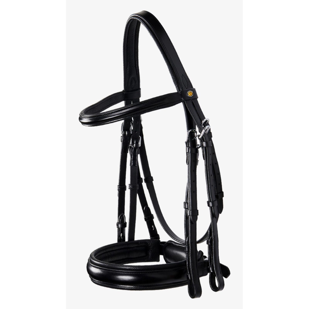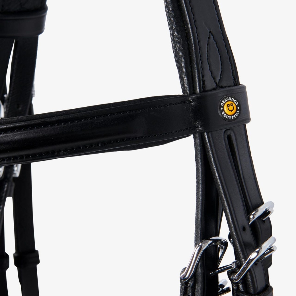 Både hagerem og lukning ved munden er justerbare, så trensen kan tilpasses perfekt til den enkelte hest. Kandaren er udstyret med rustfri stålspænder, der giver høj stabilitet, sikkerhed og lang holdbarhed. Det polstrede pandebånd er elegant dekoreret med en metalplade med Equestro-logo.