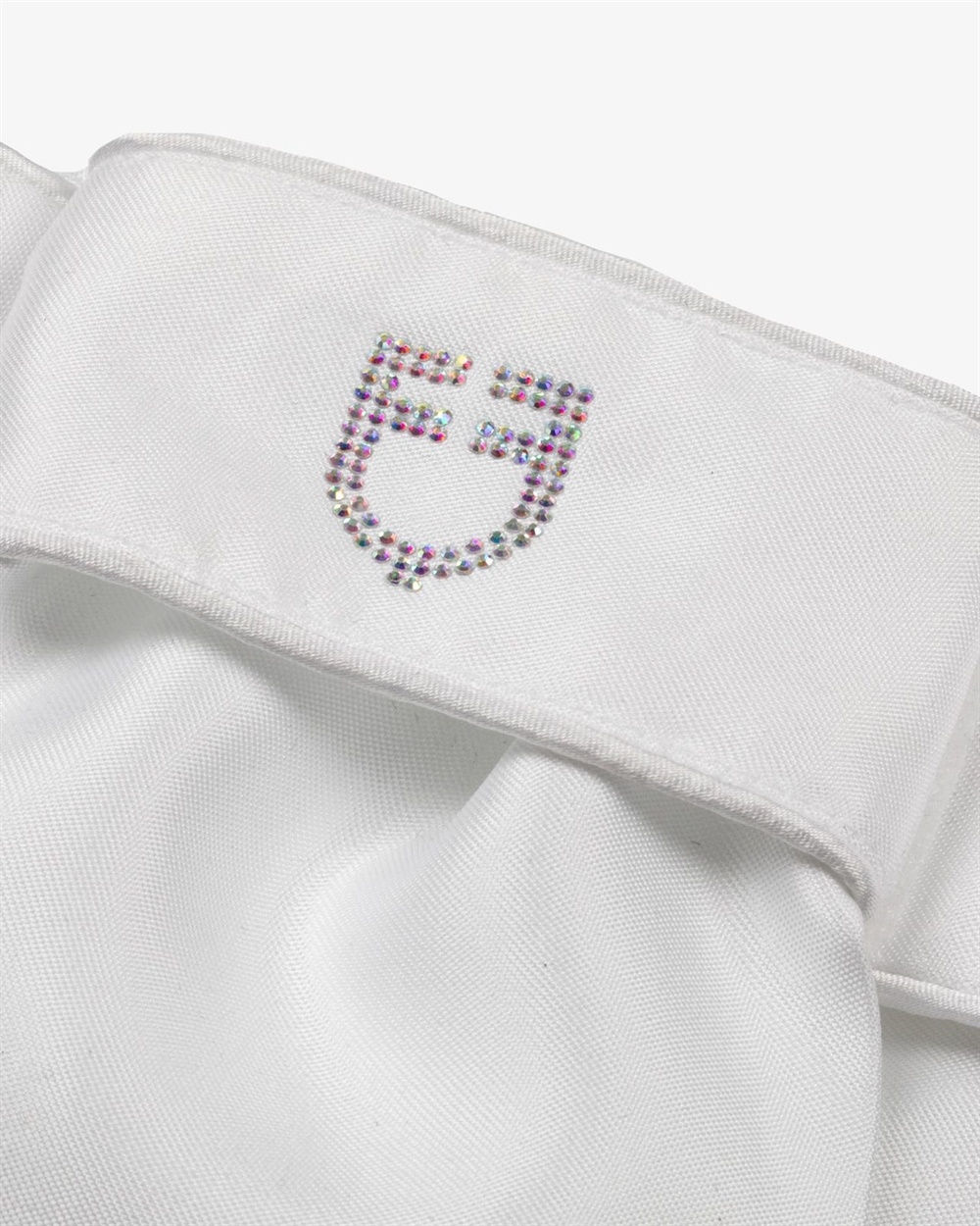 Det slidstærke og komfortable materiale gør plastronet velegnet til gentagen brug, mens velcrolukningen sikrer nem og hurtig påtagning. Det eksklusive udtryk fuldendes af Equestro-logo udført i rhinsten, som tilfører et stilfuldt og elegant touch til konkurrenceuniformen.