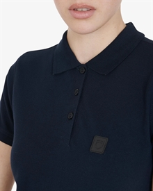Poloshirten har et feminint slim fit, der giver en flot og velsiddende silhuet uden at begrænse bevægelsen. Ribkanter ved både ærmer og krave samt en klassisk tre-knaps lukning fuldender det sporty, tidløse look.