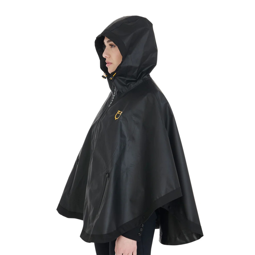 Alle sømme og lynlåse er varmeforseglede for at garantere fuldstændig vandtæthed, mens det feminine snit giver et flot og moderne udtryk. Regnfrakken har et printet Equestro-logo på venstre bryst samt logo-detaljer langs lynlåsen, der fuldender det eksklusive design.