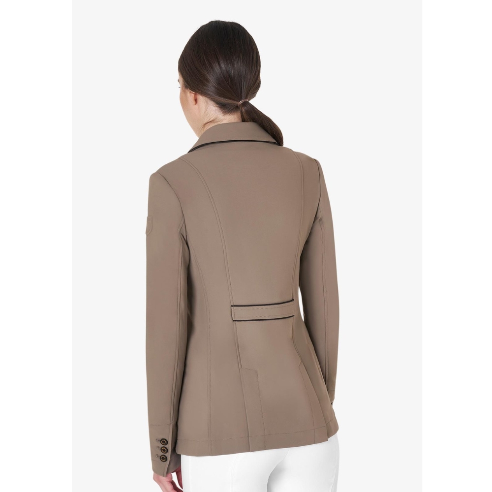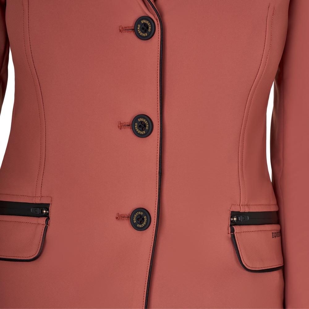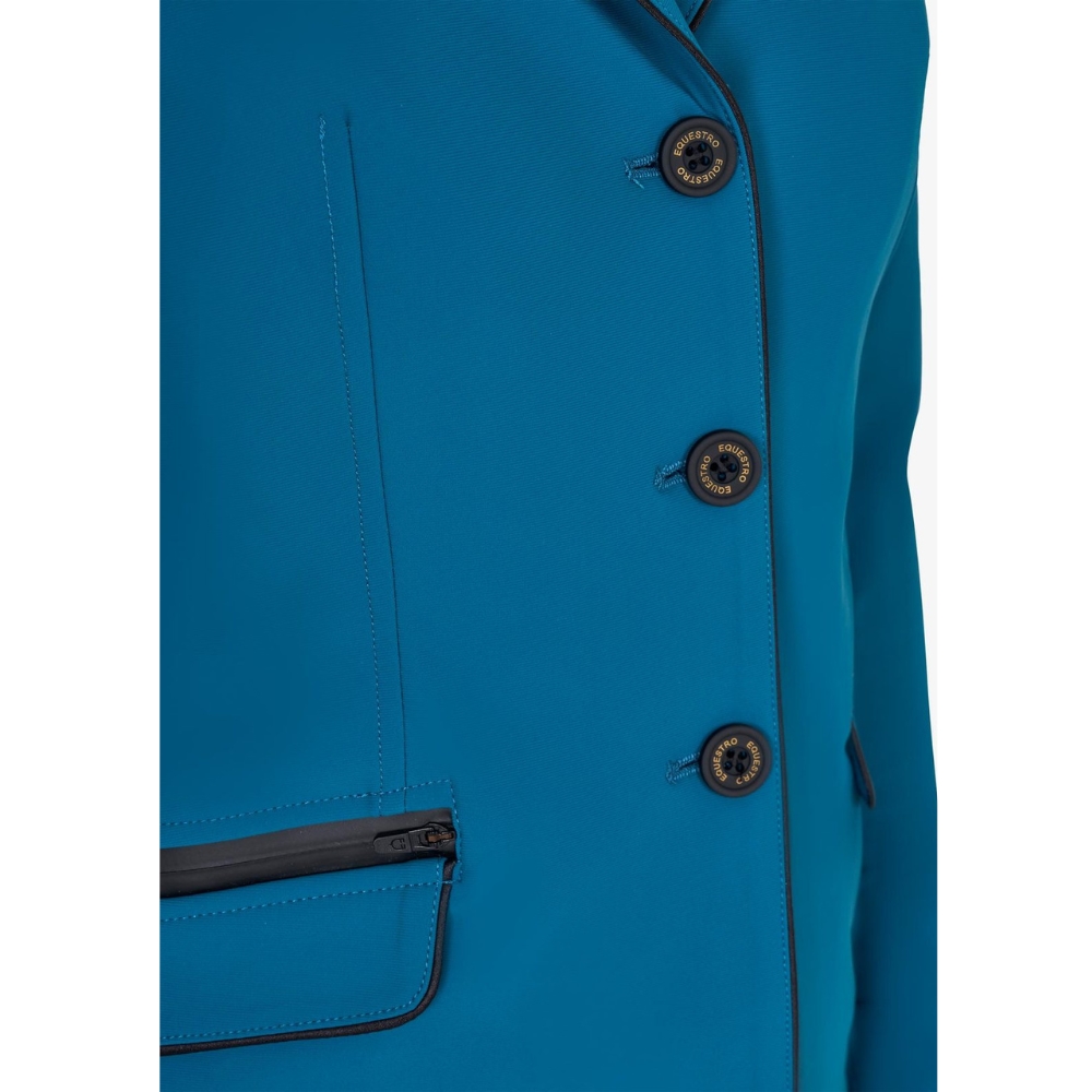 Denne elegante stævnejakke til kvinder kombinerer klassisk stil med moderne performance. Jakken er fremstillet i let og perforeret teknisk stof, som sikrer maksimal åndbarhed, ventilation og bevægelsesfrihed – ideel til både varme stævnedage og intensiv ridning.