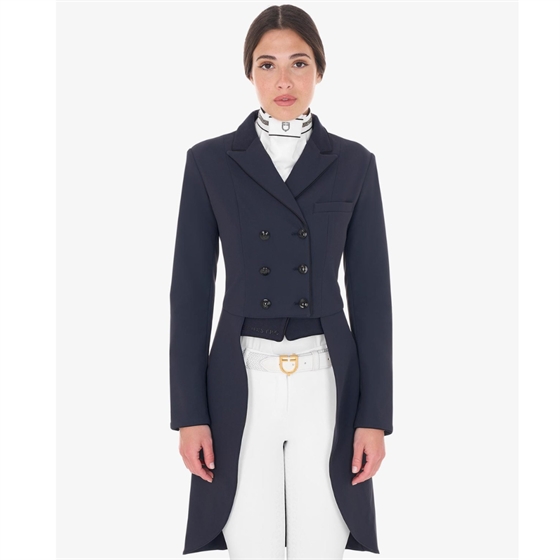Elegant Dressurkjole til kvinder fra Equestro, fremstillet i et åndbart og bi-elastisk teknisk materiale, der sikrer maksimal bevægelsesfrihed og komfort under ridning.