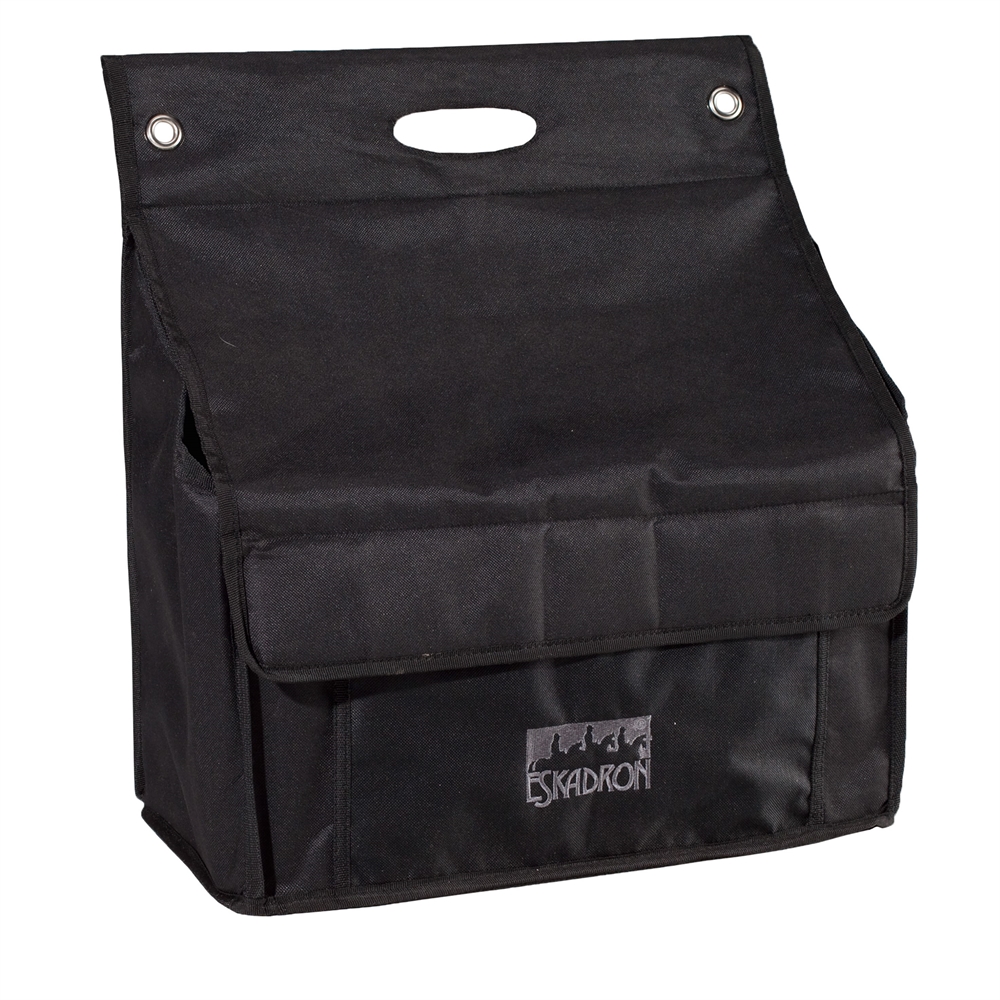 Praktisk bokstaske med masser af opbvaringsplads og mange rum.