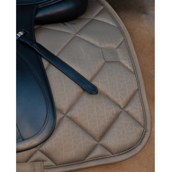 Flot springunderlag med en slidstærk, blank overflade og en svedtransporterende inderside, som sikrer komfort for hesten – selv under intens træning. Det store quiltmønster er udsmykket med et elegant bid-print, der giver et sofistikeret udtryk.
