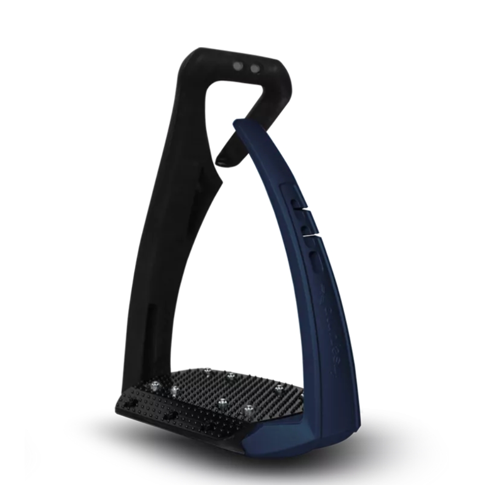 Den brede fodplade giver et bedre greb, optimal trykfordeling og effektiv stødabsorbering, hvilket øger komforten – selv under længere rideture. Konstruktionen består af en stærk stålbøjle på indersiden, som sikrer stabilitet og form, mens den fleksible yderside i Elastollan® gør det lettere for rytteren at få foden fri i tilfælde af fald.