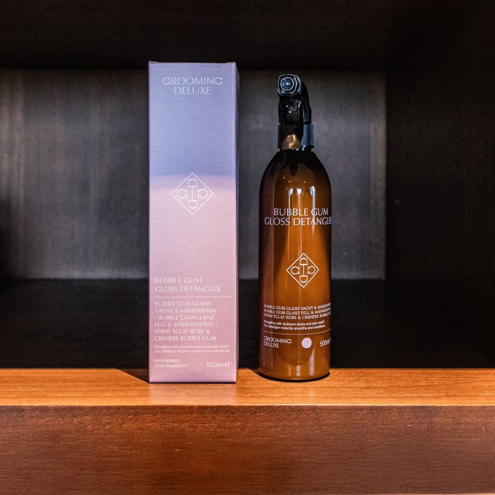 Bubble Gum Gloss Detangler gør striglingen lettere og efterlader hestens man, hale og pels blød, skinnende og velplejet.
