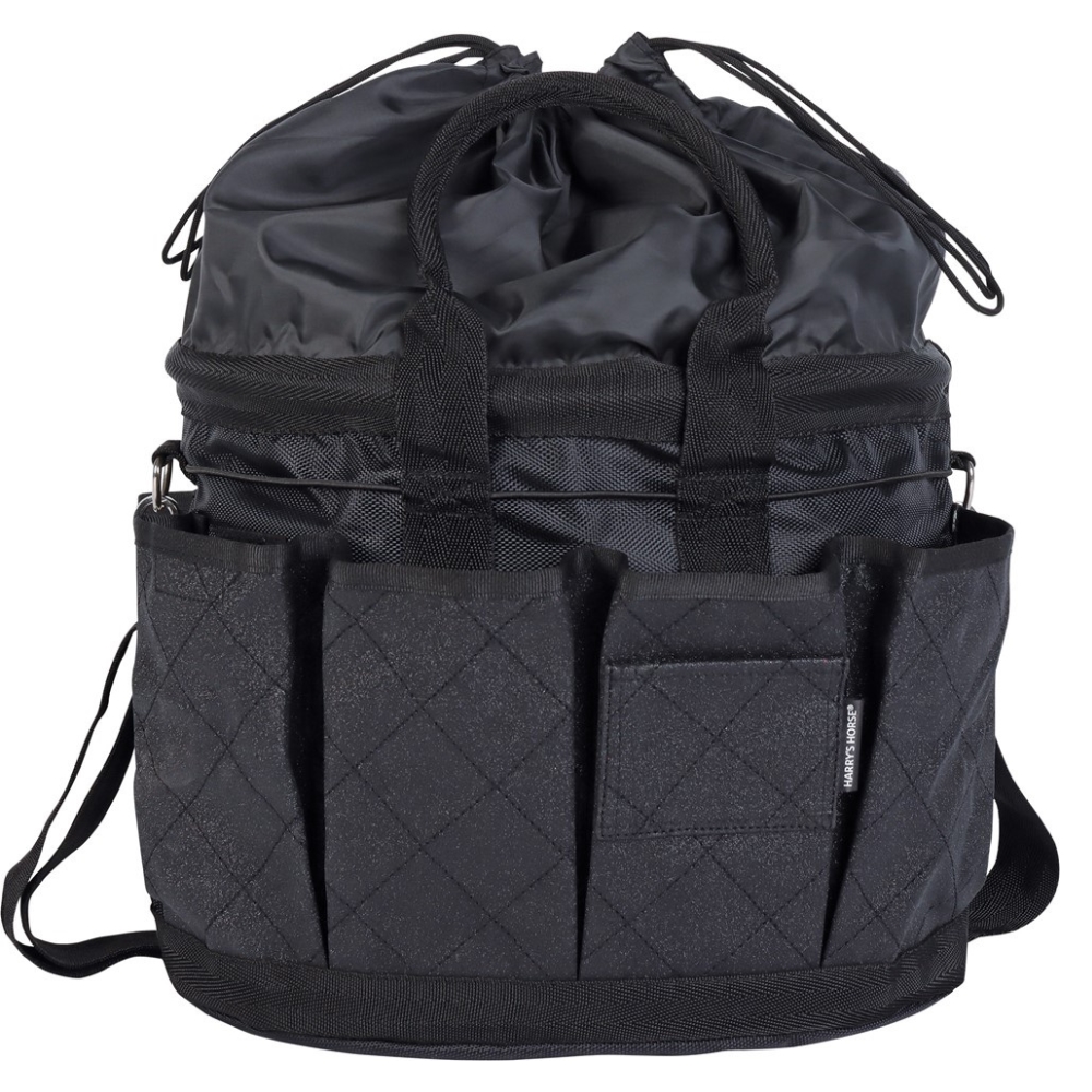 Flot glitrende stirgletaske med mange rum. Toppen på tasken kan snørres sammen, og har et rum på siden med lynlås på både indvendig og udvendig side.