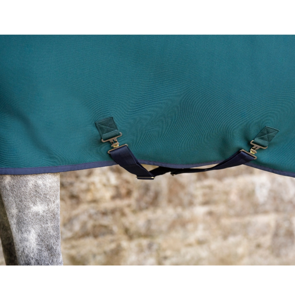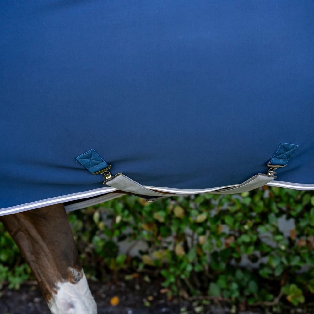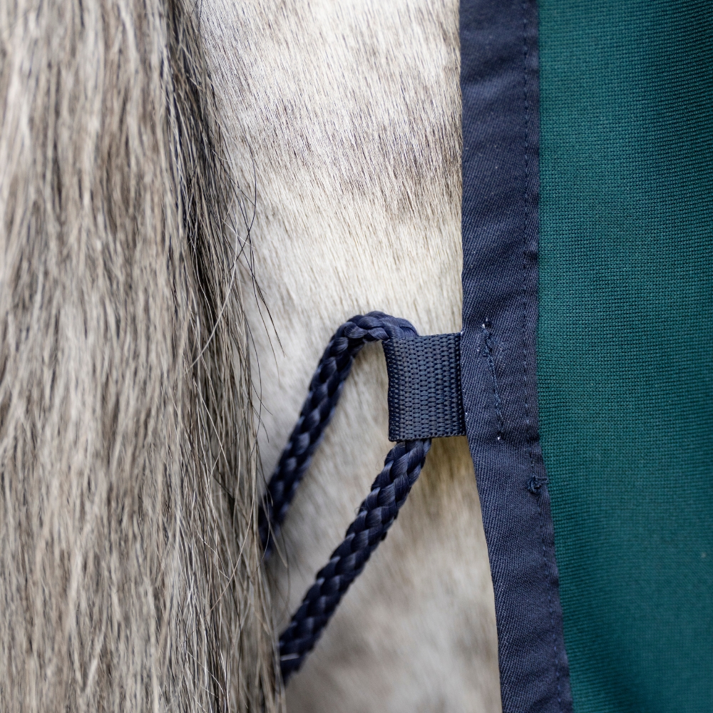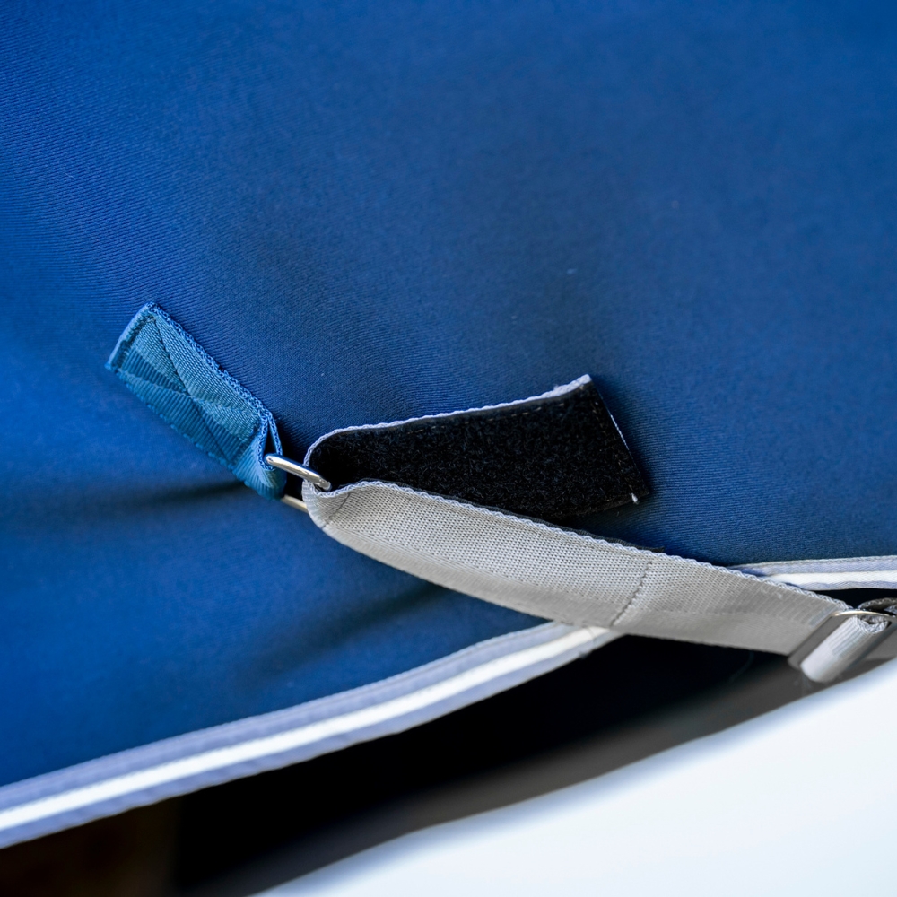 Dækkenet er udstyret med en sikker frontlukning, aftagelige gjordstropper og en halestrop, som giver fleksibilitet og gør det nemt at tilpasse dækkenet efter behov.