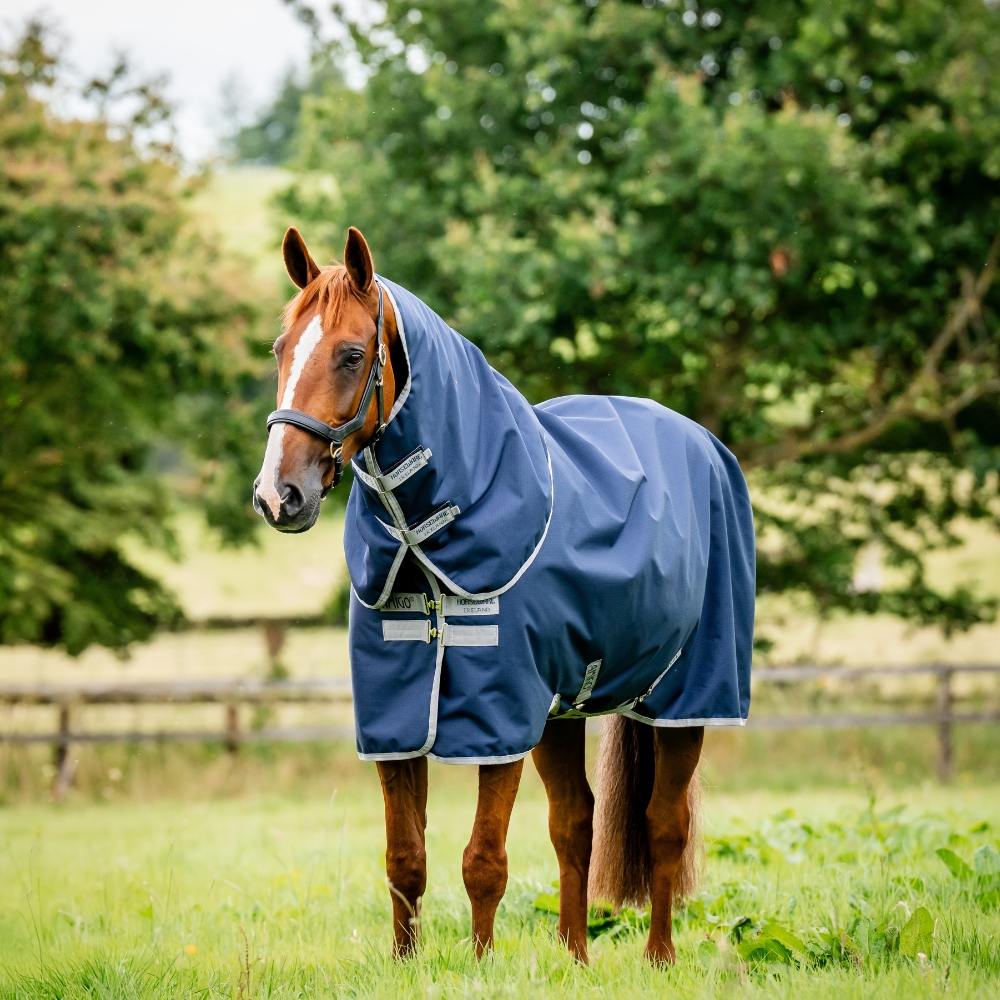 Den aftagelige hals med 150 gram fyld medfølger, og dækkenet er passer med Horseware’s linersystem, så du nemt kan justere tykkelsen efter behov og vejr.