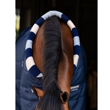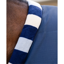 Den bløde fleecekrave med klassiske Newmarket-striber beskytter mod træk omkring halsen og giver samtidig et eksklusivt look. Horsewares V-frontlukning sikrer optimal skulderfrihed, så hesten kan bevæge sig naturligt og ubesværet.