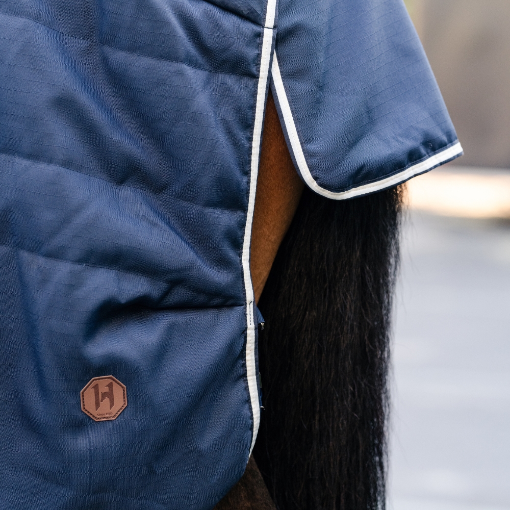 Dækkenet er fremstillet i et robust 1000D ripstop ydermateriale, der sikrer lang holdbarhed ved daglig brug. Det termo-bondede fiberfyld giver en jævn og effektiv varmeisolering uden kuldebroer, mens det fugtabsorberende mikrofiberfor hjælper med at holde hesten tør og komfortabel – også når den stadig er let varm efter træning.
