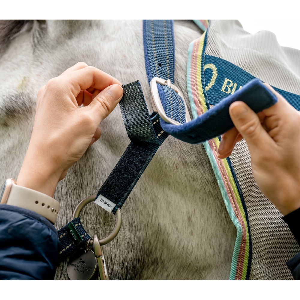 Field Safe-grimen er konstrueret til at åbne sig, hvis hesten skulle sidde fast i noget. Dette sker via en genanvendelig velcrolukning, som øger sikkerheden uden at gå på kompromis med funktionaliteten. Derudover er grimen udstyret med refleksdetaljer, som forbedrer synligheden i mørke og dårlige lysforhold.