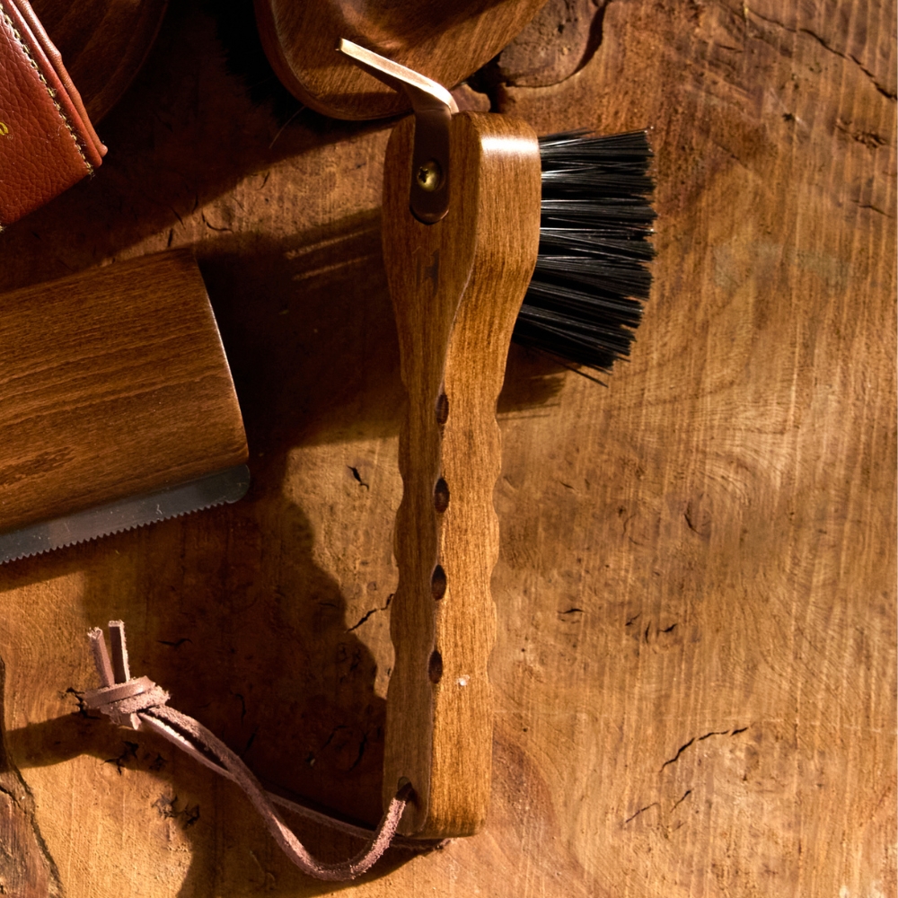 Hovrenseren er udstyret med en stærk hovkrats i rustfrit stål samt faste børstehår på bagsiden, som effektivt fjerner snavs, mudder og små sten fra hestens hove. Den stilfulde læderløkke gør det nemt at hænge redskabet op i stalden.