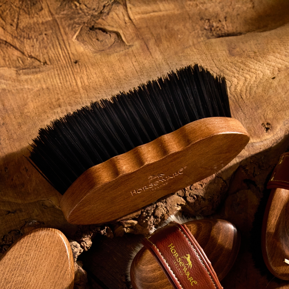 Horseware Signature Soft Flick Brush er en eksklusiv strigle med ultrabløde, lange og fleksible børstehår af naturligt hestehår. Børsten er ideel til skånsomt at fjerne støv og let snavs fra hestens pels, samtidig med at den efterlader en flot og naturlig glans.