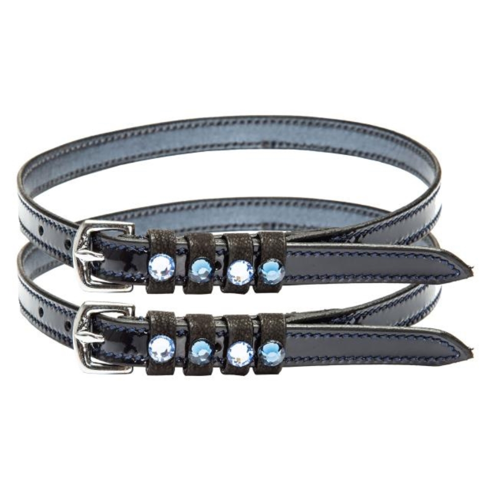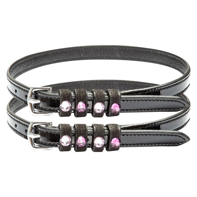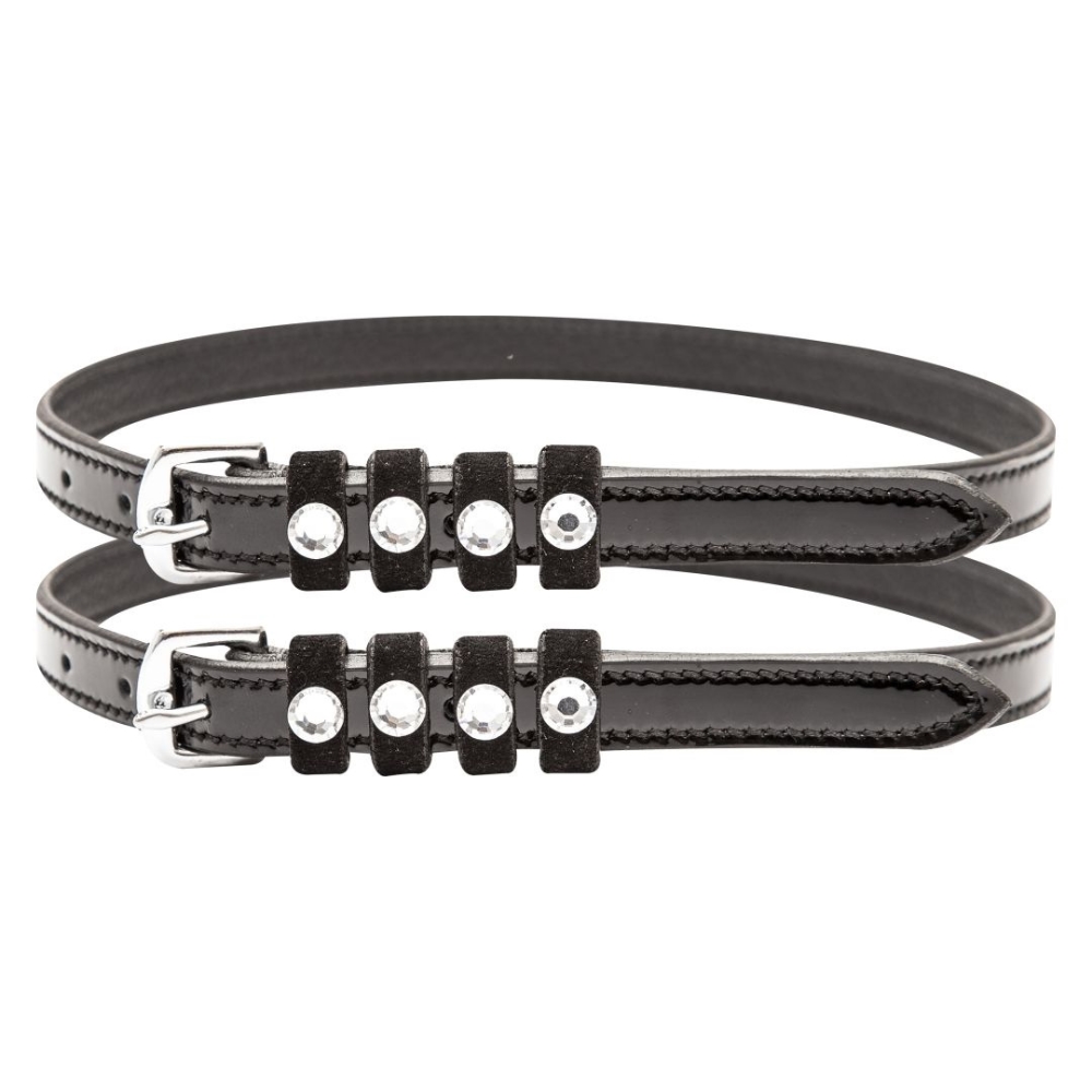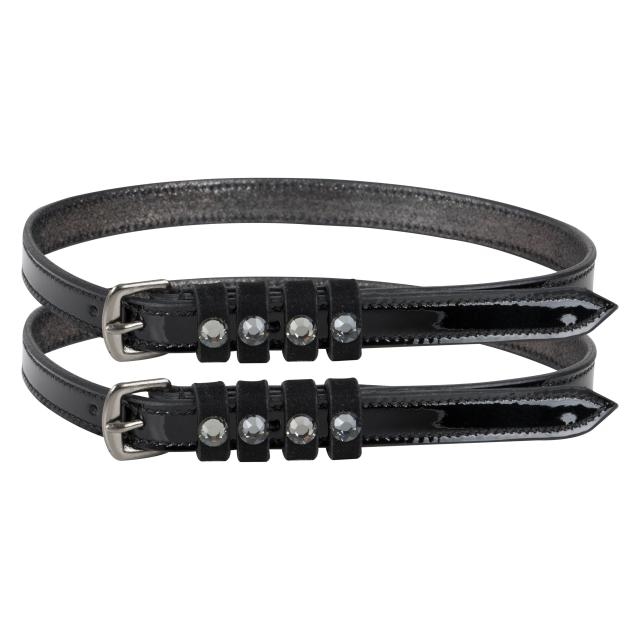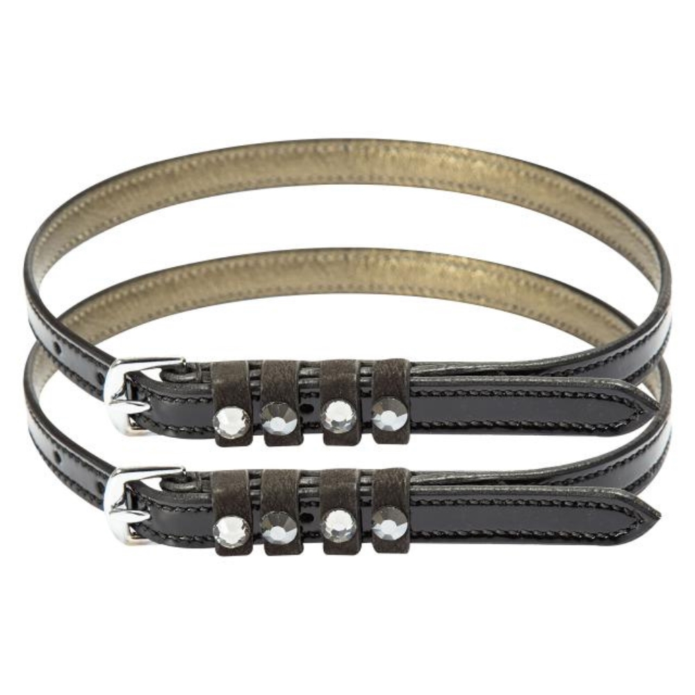 Fremstillet i flot læder med lakdetaljer og dekoreret med strass-sten, giver de et eksklusivt og stilfuldt look – perfekt til ryttere, der ønsker det lille ekstra.