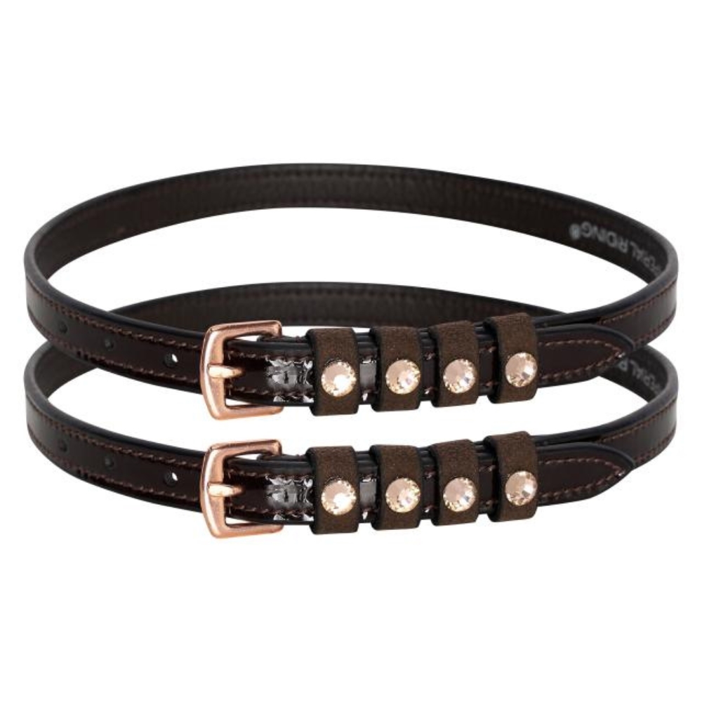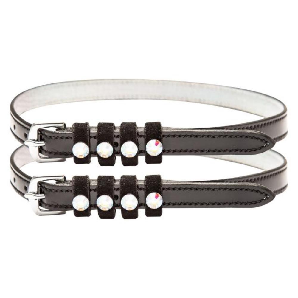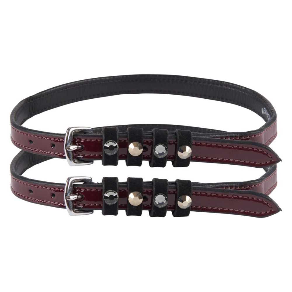 Fremstillet i flot læder med lakdetaljer og dekoreret med strass-sten, giver de et eksklusivt og stilfuldt look – perfekt til ryttere, der ønsker det lille ekstra.