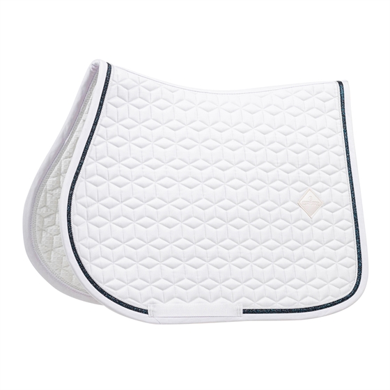 Elegant sadelunderlag med unik stjernequiltning og dekorative glitter- og rebdetaljer, der kombinerer stil og funktionalitet. Underlaget beskytter hesten mod friktion fra sadlen og sikrer optimal komfort under ridning. Den enkle designløsning med én nylonrem til gjorden gør det nemt at tage af og på.