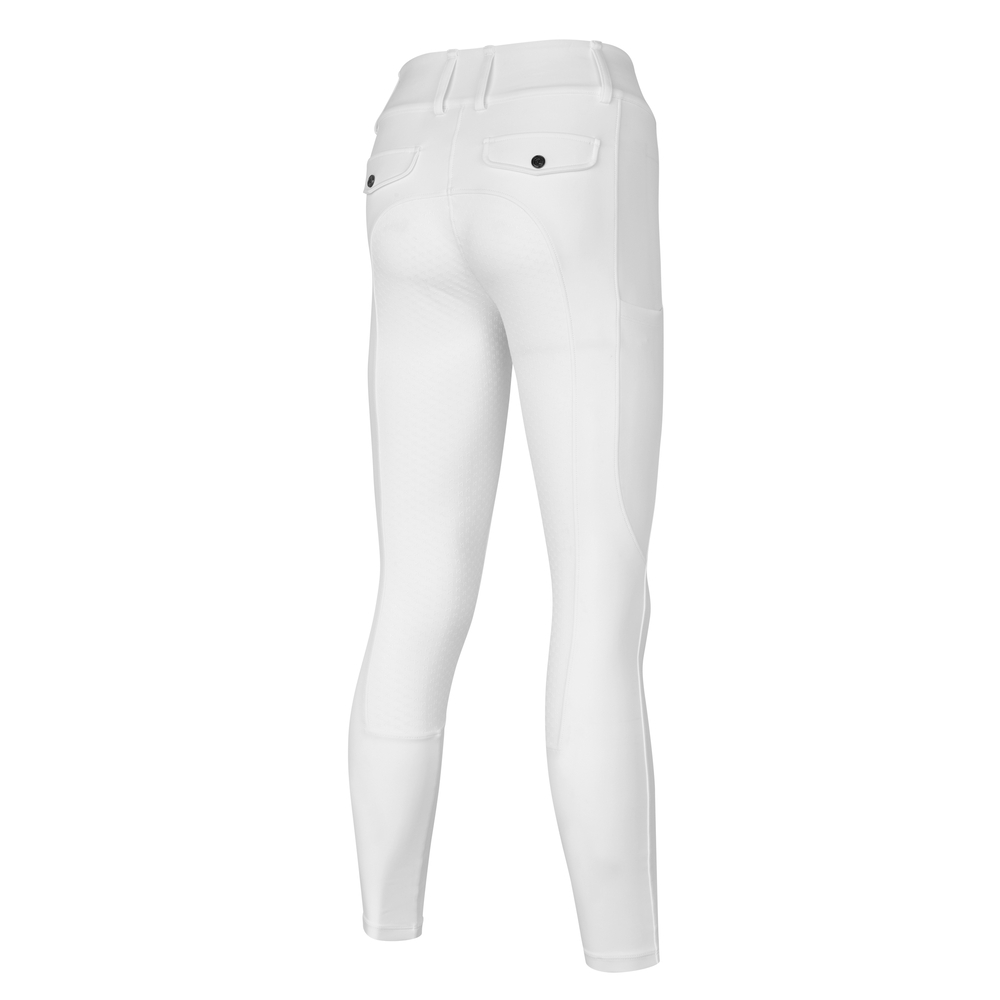 Den A-formede pasform giver et flatterende snit, mens fuld silikonegrip sørger for maksimal stabilitet og kontrol i sadlen. Ridebukserne bevarer deres form og komfort – selv under intensiv træning og lange dage i stalden.