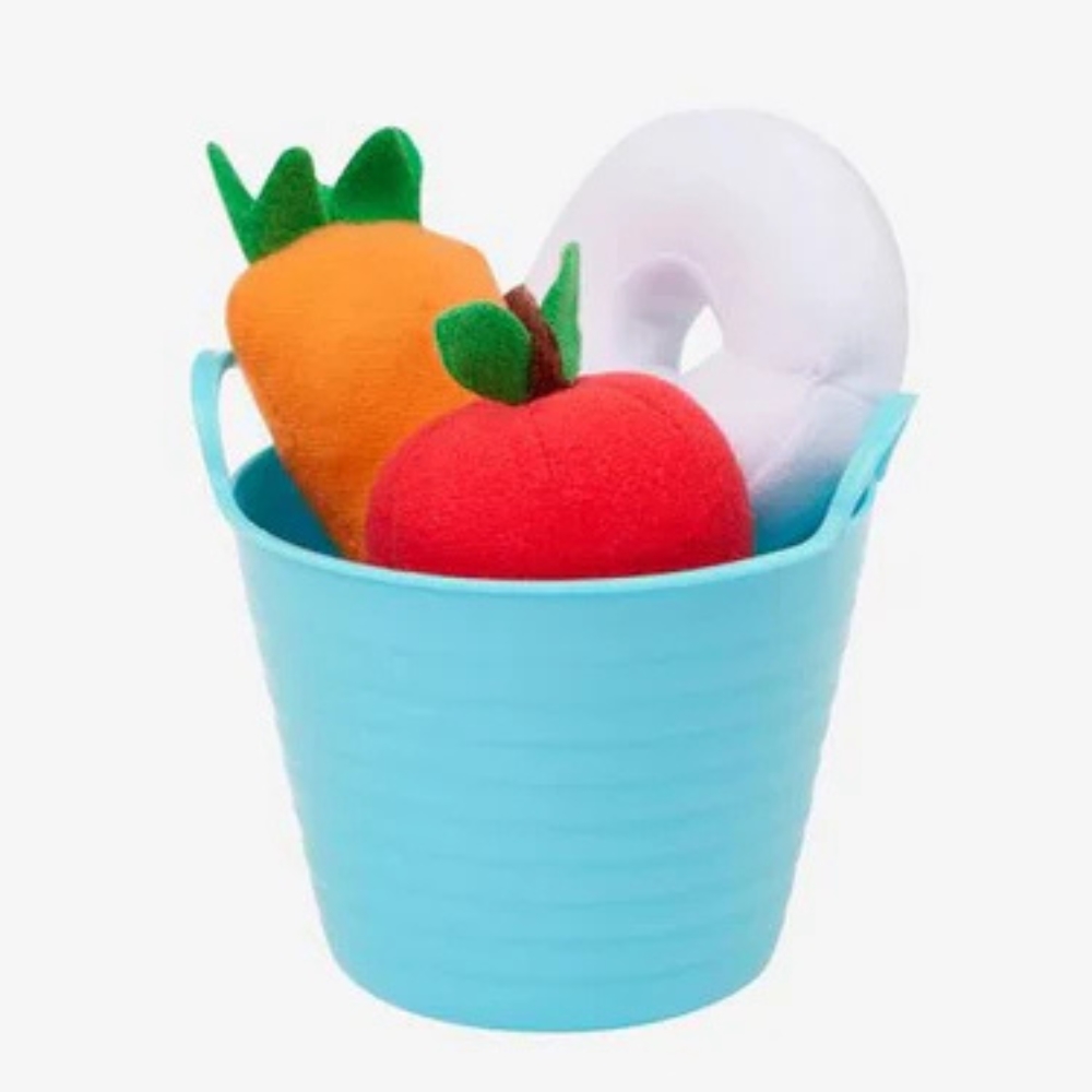 Denne søde Hobby Horse godbidskurv indeholder en række bløde stofgodbidder, der ligner ægte hesteguffer – blandt andet en blød stofgulerod, et sprødt æble, og en lækker sukkerknold. Alle godbidderne er lavet i blødt stof med fine detaljer, så de både er hyggelige at lege med og sikre for børn.