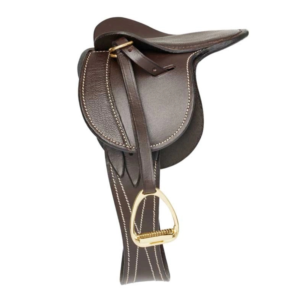 Sadelens dobbelte sadelklap, tre gjordstropper og spænde-beskyttere giver en autentisk fornemmelse af en rigtig sadel. Med en aftagelig gjord og metal stigbøjler er den ideel til at øve opsadling, forstå sadlens opbygning og lære om vedligeholdelse af rideudstyr.