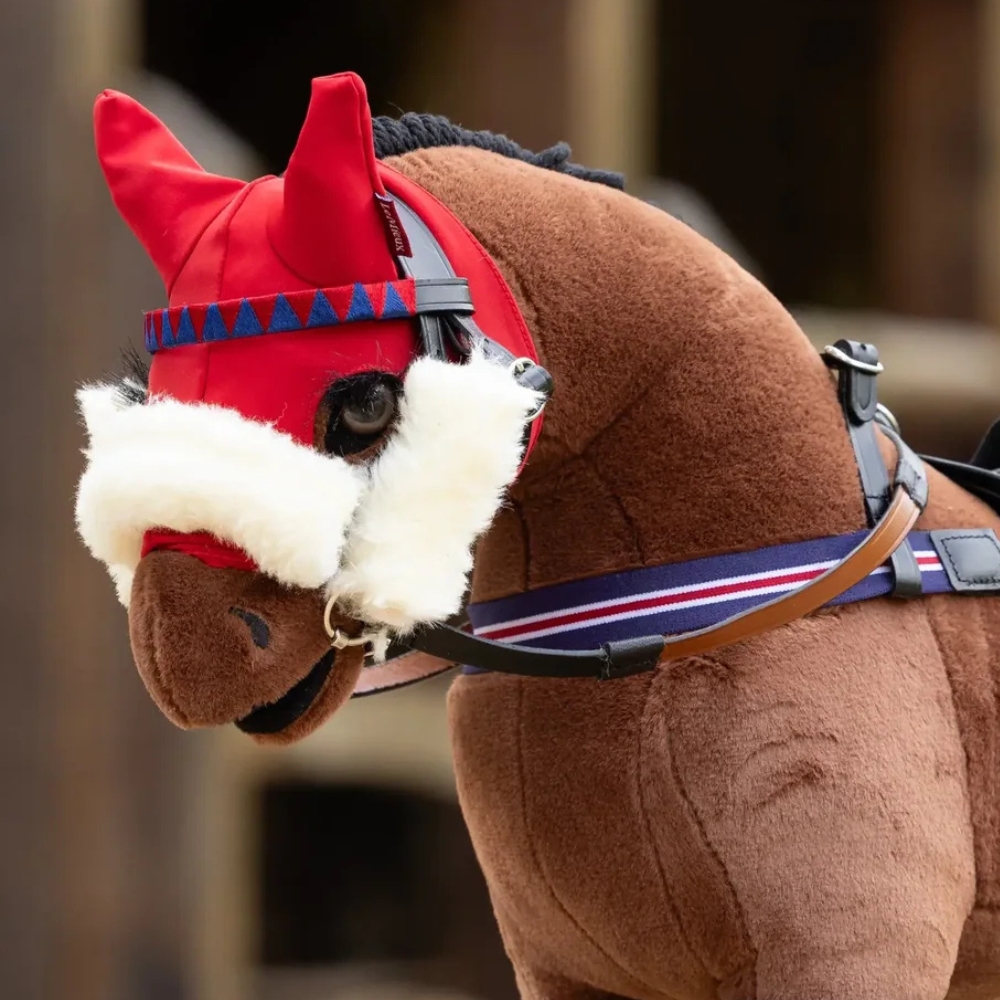 LeMieux Racing Trense til Toy Pony giver små jockeys en autentisk og stilfuld oplevelse. Perfekt til både leg og udstilling, så Toy Ponyen kan få et gennemført galoplook med racingstil.