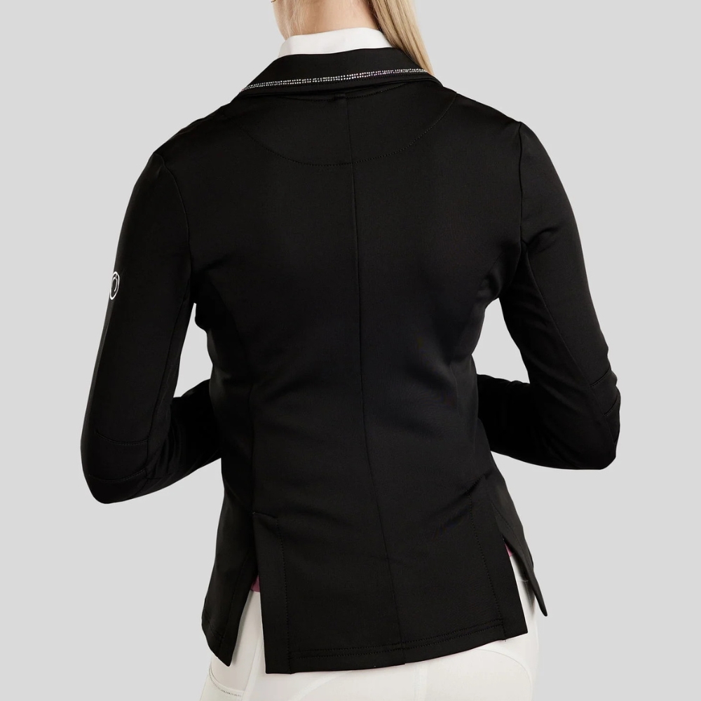 En smart og funktionel stævnejakke til unge ryttere, med masser af Bling, der samtidig ønsker et stilrent look og høj bevægelsesfrihed i sadlen.