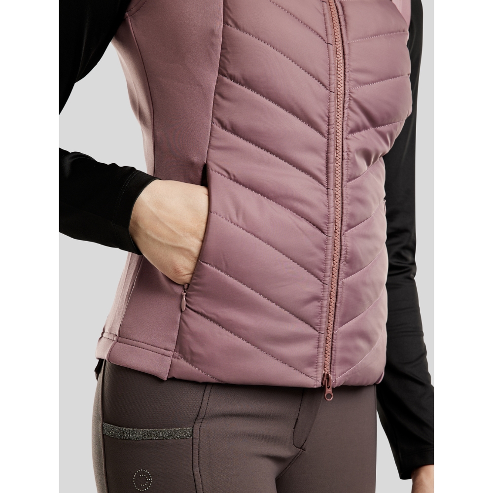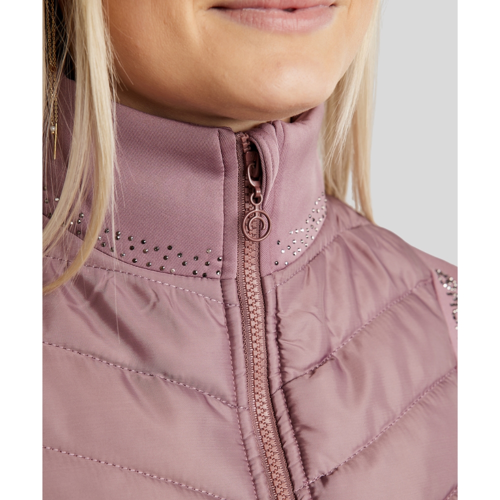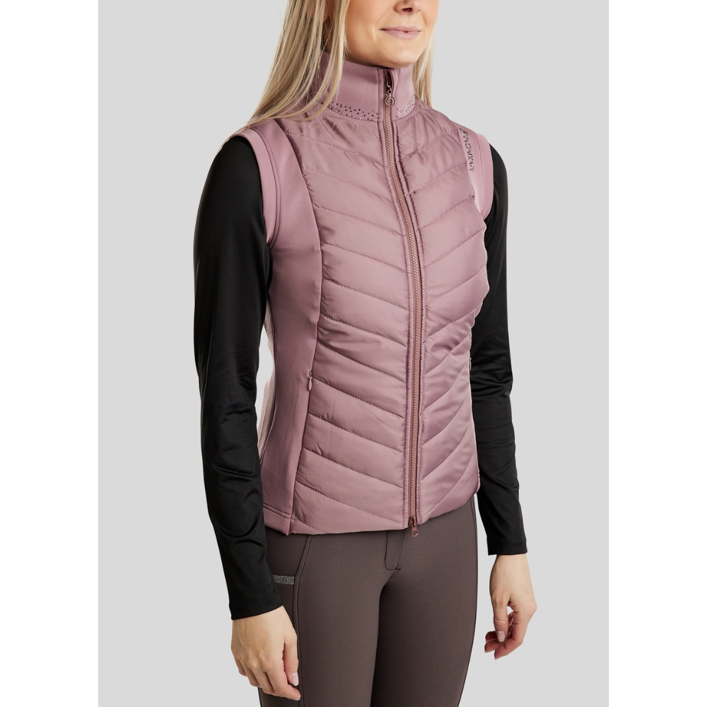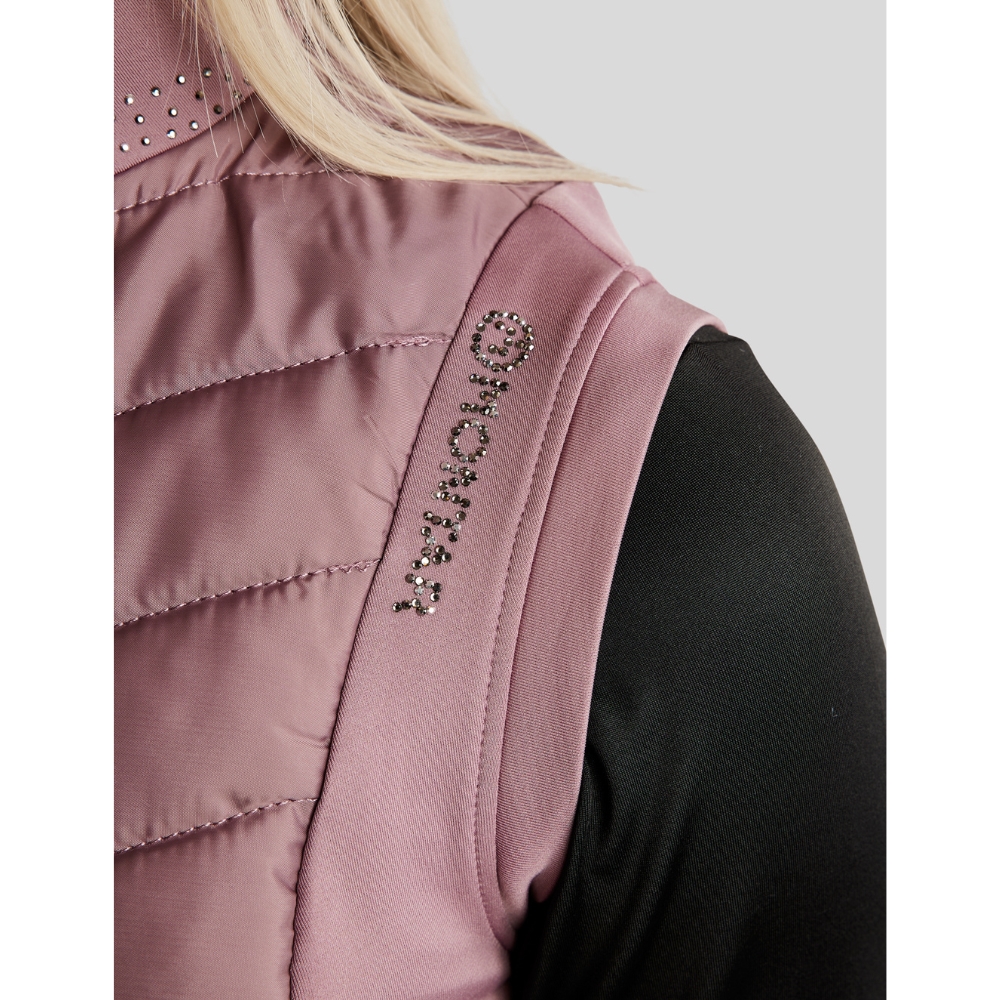 Opgrader din ridegarderobe med MoEmilia hybrid bodywarmer. Det er en elegant vest, der kombinerer sporty funktionalitet med et stilfuldt og glamourøst udtryk.