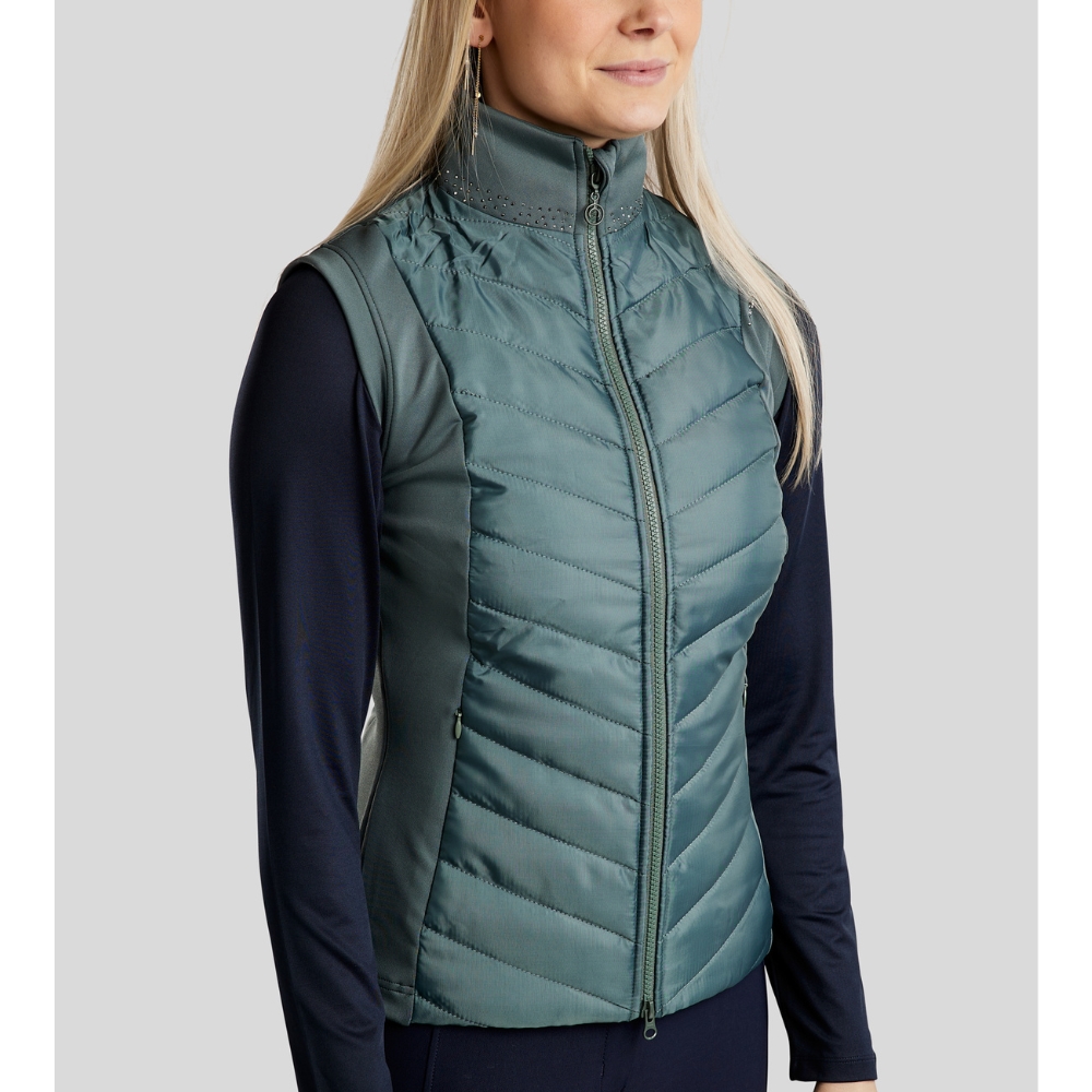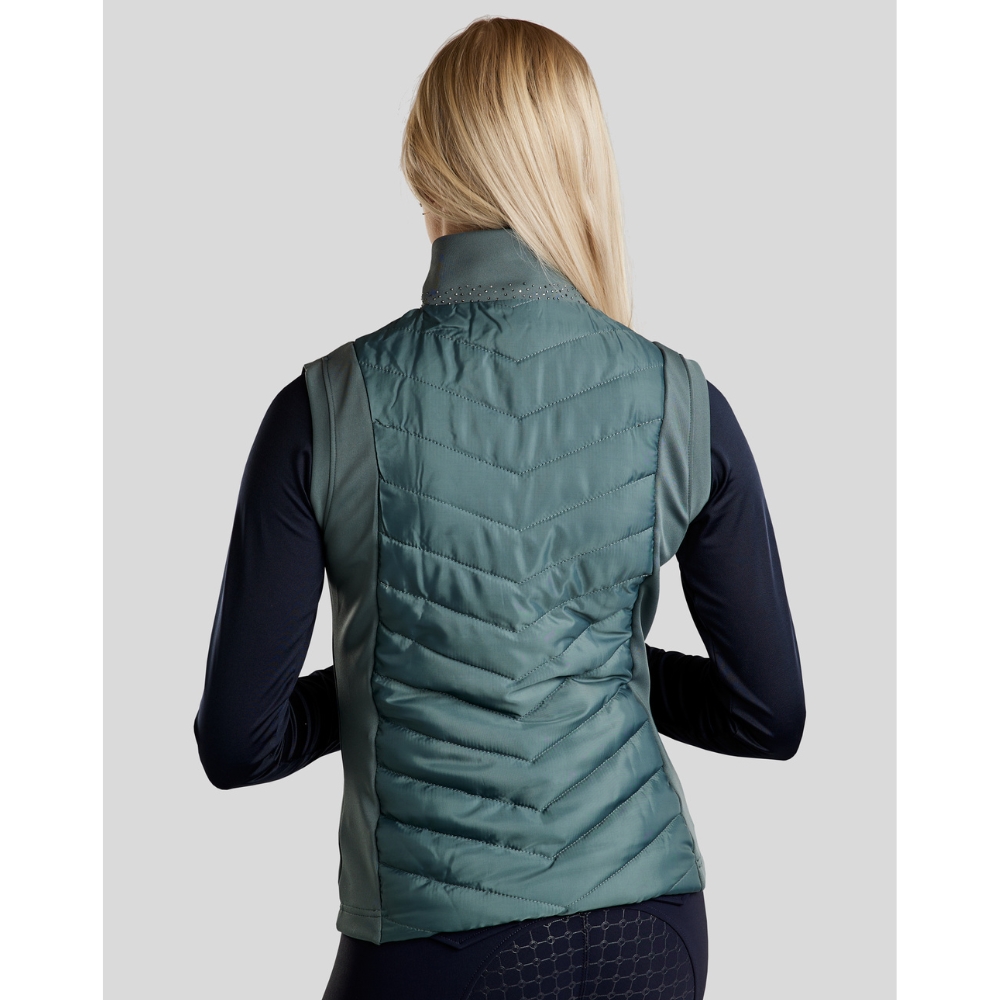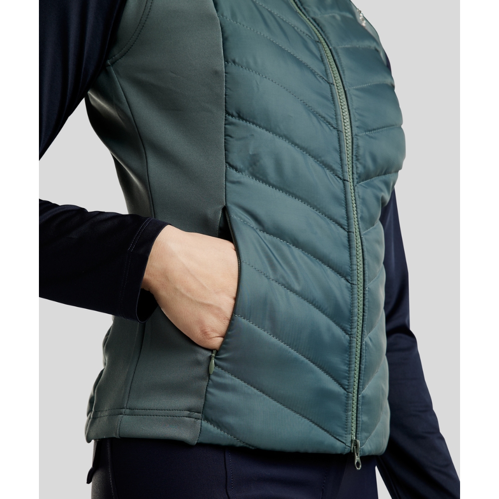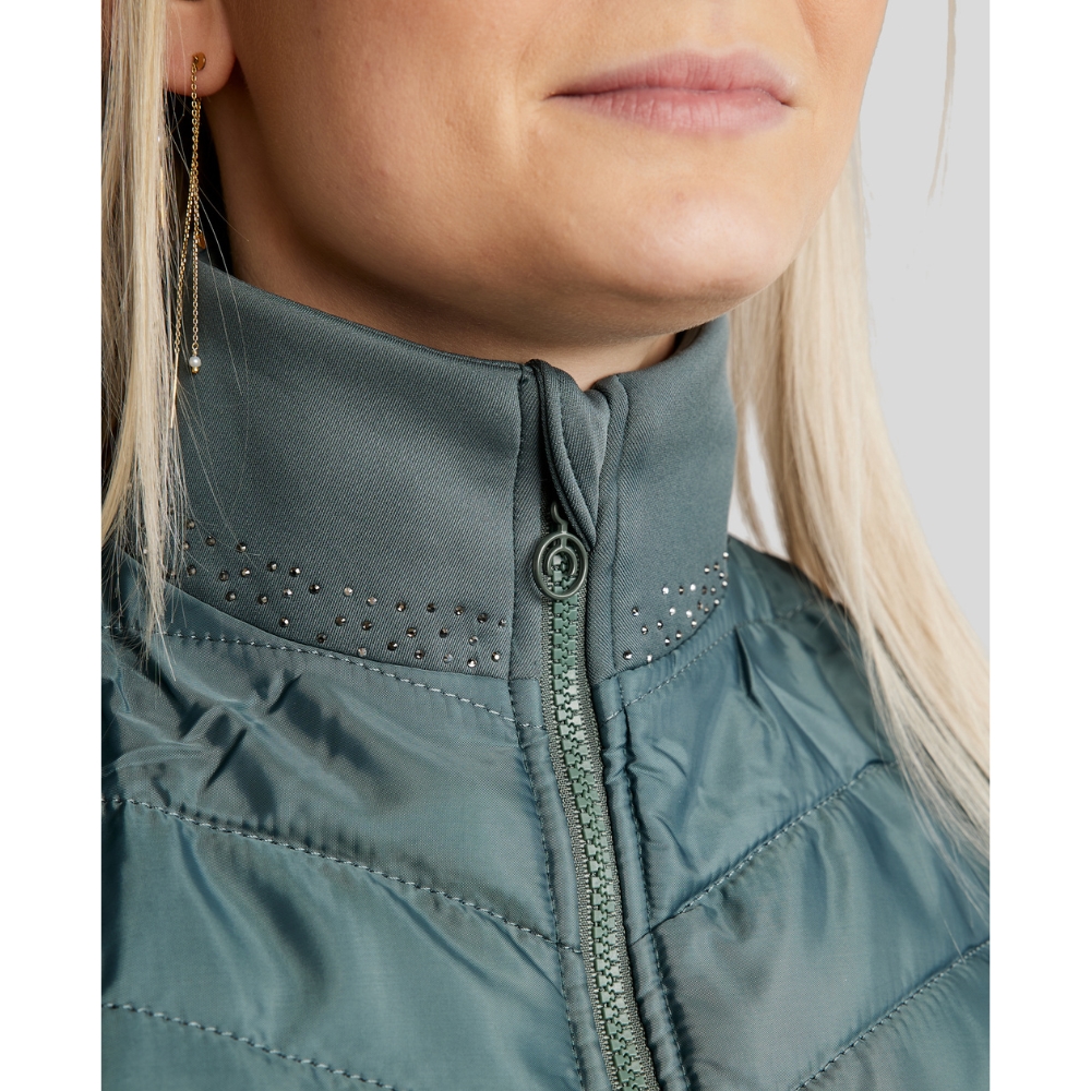 Opgrader din ridegarderobe med MoEmilia hybrid bodywarmer. Det er en elegant vest, der kombinerer sporty funktionalitet med et stilfuldt og glamourøst udtryk.