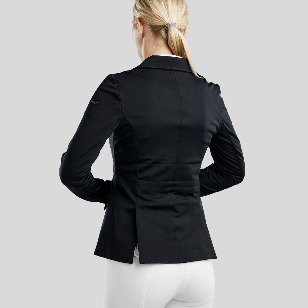 MoGloria Caviar Tape stævnejakken er en sofistikeret og stilfuld stævnejakke, der kombinerer luksuriøse detaljer med praktisk funktionalitet. Perfekt til ryttere, der værdsætter elegance og ydeevne, og som ønsker at gøre indtryk på stævnebanen.