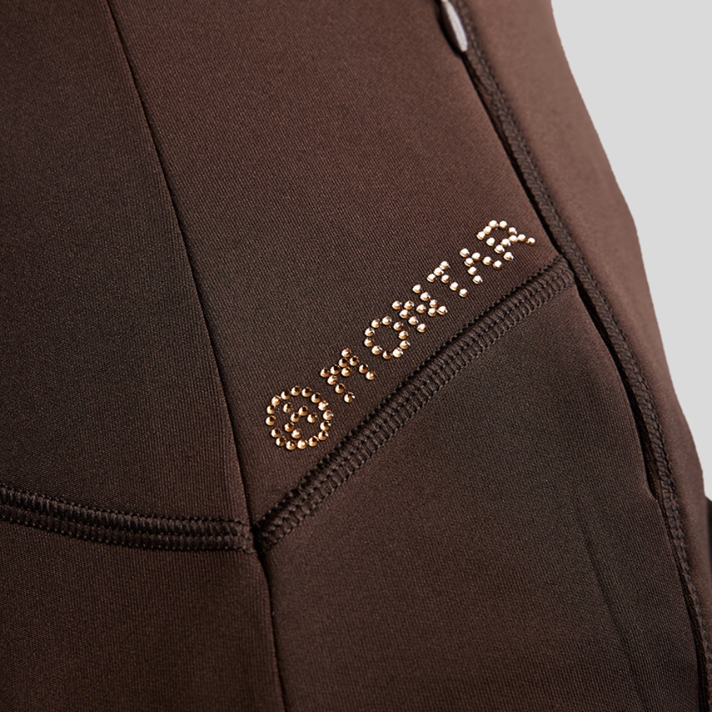 Denne softshell-jakke kombinerer komfort, stil og ydeevne og er designet til ryttere, der ønsker både funktionalitet og elegance. Pintuck-detaljer på skuldrene skaber et slankt og sofistikeret look, og de glitrende krystaller som sidder bag på kraven, tilføjer et strejf af glamour.