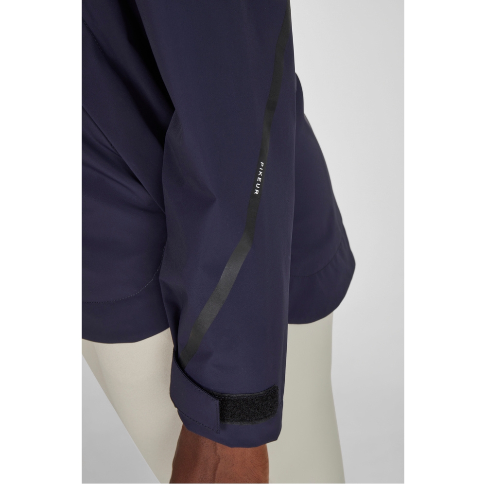 Jakken har en vandtæt kantlynlås samt to praktiske lynlåslommer i siderne. Den indvendige talje kan justeres med tunnel og stopper, så du kan tilpasse pasformen. Hætten kan reguleres med snøre, og både ærmer og hætte er dekoreret med Pikeur-print for et sporty look. Ærmekanterne justeres individuelt med velcro.