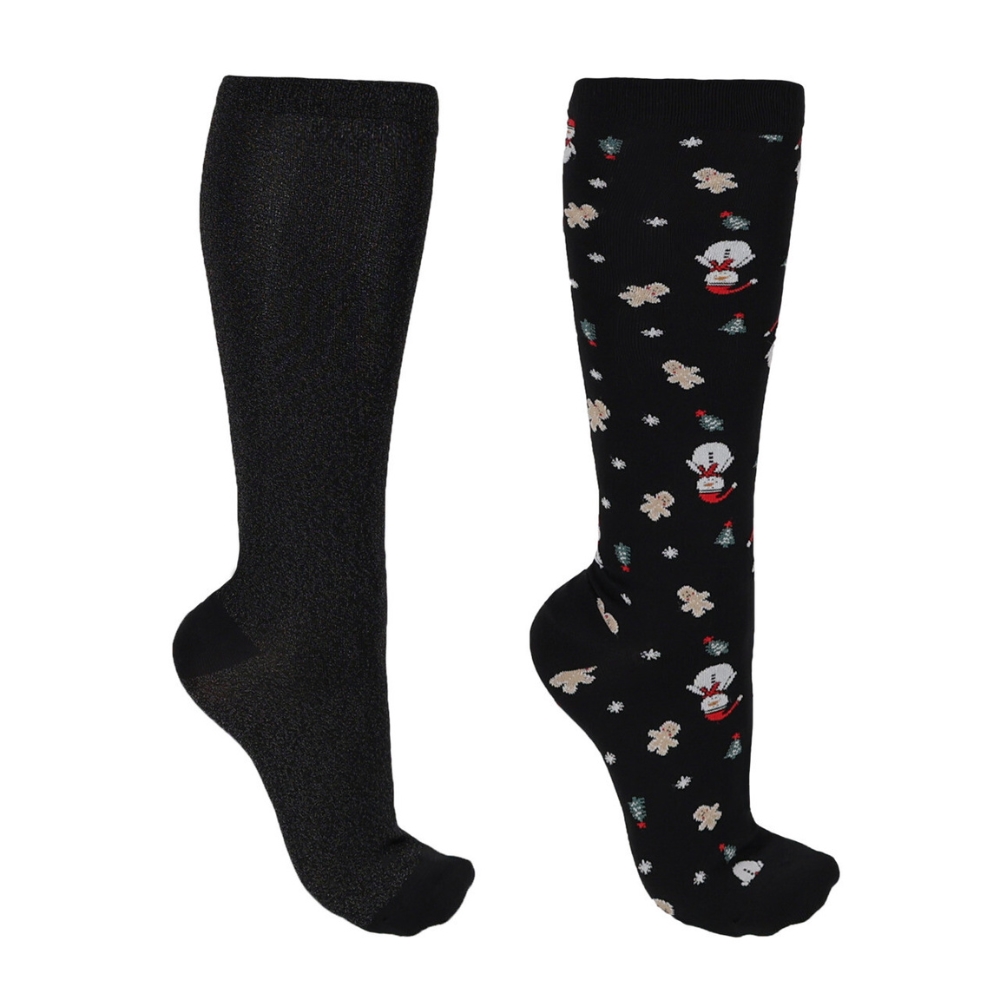 Sættet indeholder to par knæstrømper med søde og sjove julemønstre, der tilføjer et festligt twist til dit outfit – perfekt til både julestævner og hverdagsbrug.
