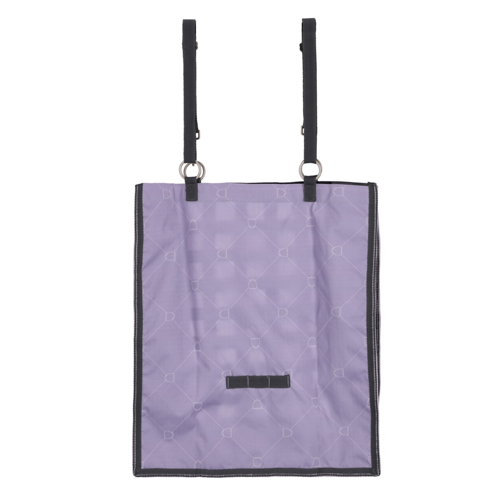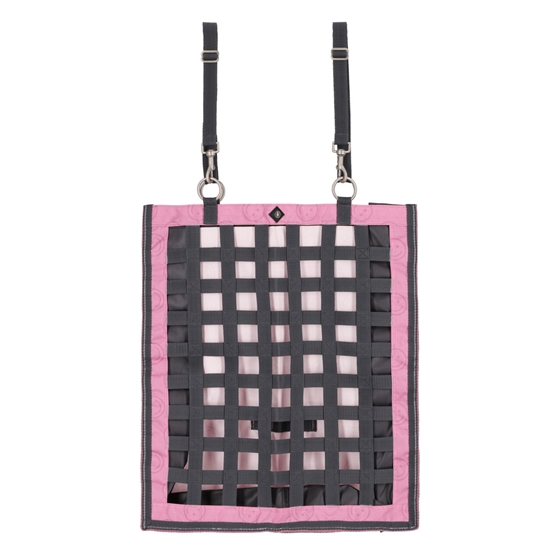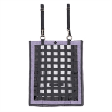 Robust slowfeeder med netfront fremstillet af brede stofstrimler, der hjælper med at reducere foderoptagelseshastigheden og minimere spild. Perfekt til brug i boks, trailer eller på stævne.
